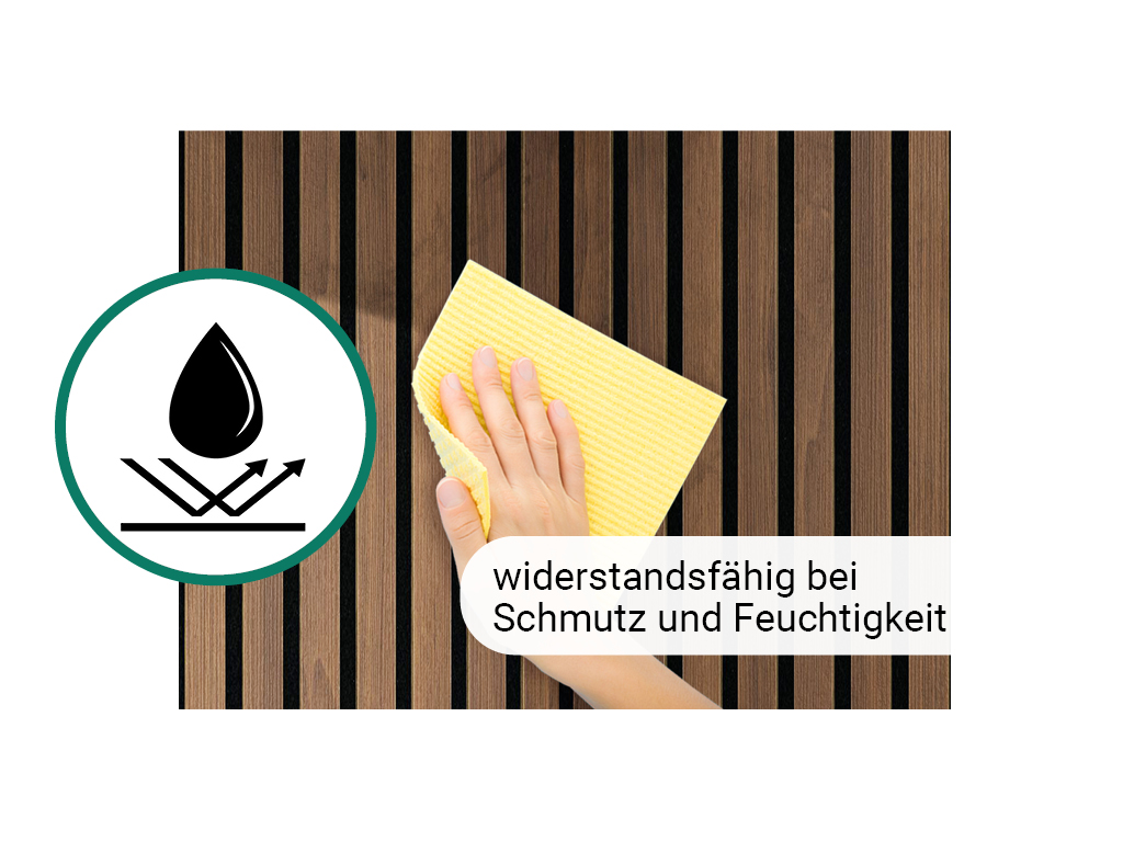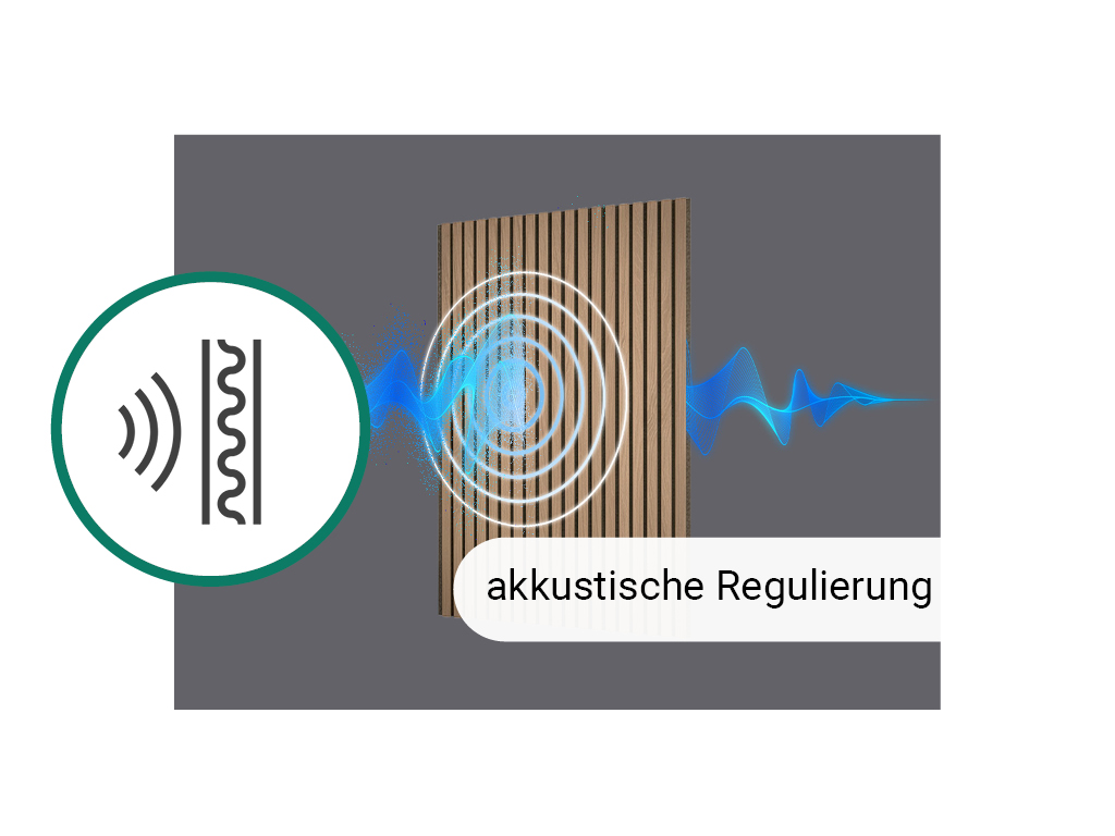 De akoestische panelen worden gebruikt voor de vormgeving van wanden en plafonds. Bovendien staan de akoestische eigenschappen van de producten op de voorgrond. De panelen hebben een dragerplaat van geluidsabsorberend, zwart vilt (vegan) met een hoog recyclingsaandeel van 70%, waarop lamellen (MDF) zijn aangebracht.