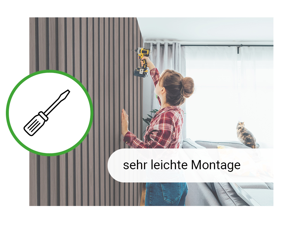 De akoestische panelen worden als hele platen geleverd, wat de installatie heel eenvoudig maakt – ze kunnen in een handomdraai aan muren of plafonds worden gemonteerd. Bepaal eerst in welke richting je de panelen wilt aanbrengen en kort ze indien nodig op maat. Vervolgens aan de muur schroeven of lijmen – klaar!