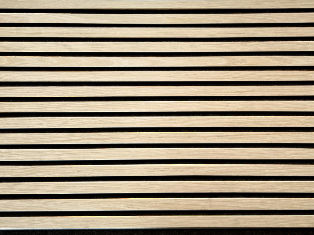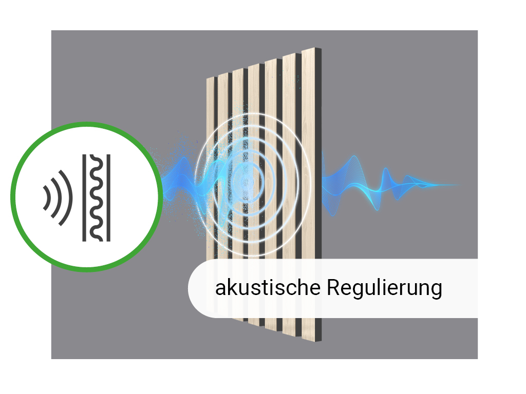 De panelen bestaan uit een 5 mm dikke draagplaat van zwart vilt, waarop 6 mm dikke MDF-lamellen zijn aangebracht. Deze bijzondere structuur maakt een optimale akoestische regulering en nagalmbeperking mogelijk.