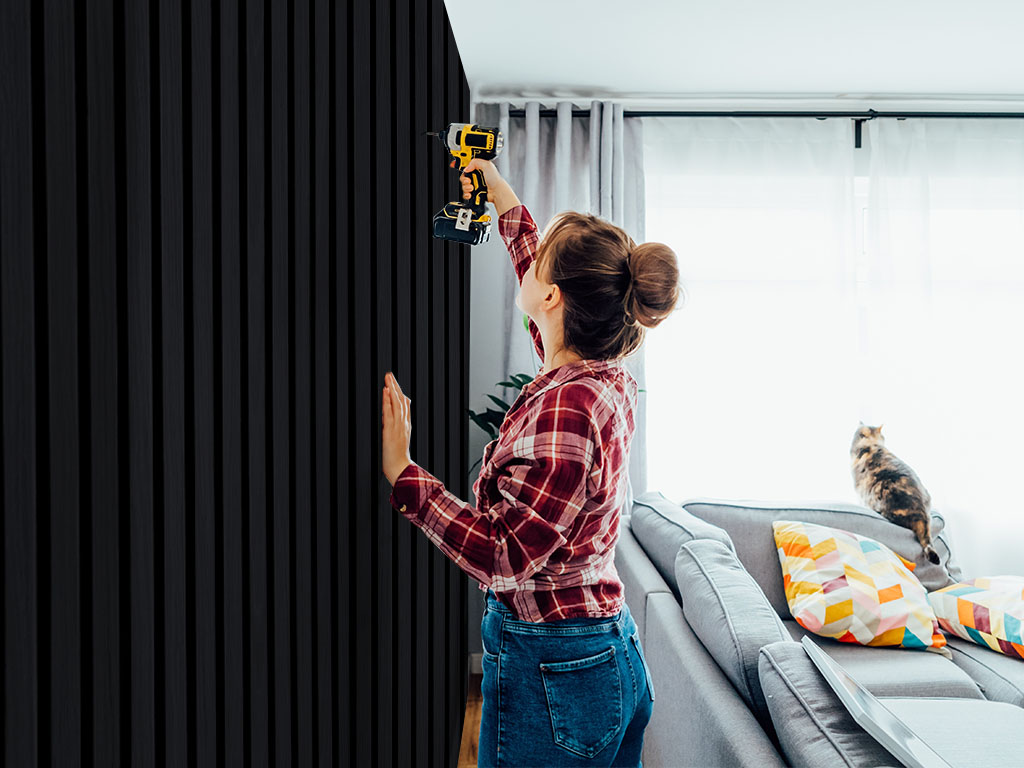 De akoestische panelen worden als hele platen geleverd, wat de installatie heel eenvoudig maakt – ze kunnen in een handomdraai aan wanden of plafonds worden gemonteerd. Bepaal eerst in welke richting je de panelen wilt aanbrengen en kort ze indien nodig in. Vervolgens aan de muur schroeven of lijmen – klaar!