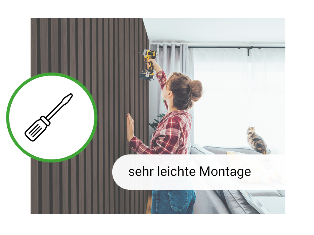 De akoestische panelen worden als hele platen geleverd, wat de installatie uiterst eenvoudig maakt – ze kunnen in een handomdraai aan muren of plafonds worden gemonteerd. Bepaal eerst in welke richting je de panelen wilt aanbrengen en zaag ze indien nodig op maat. Vervolgens aan de muur schroeven of lijmen – klaar!