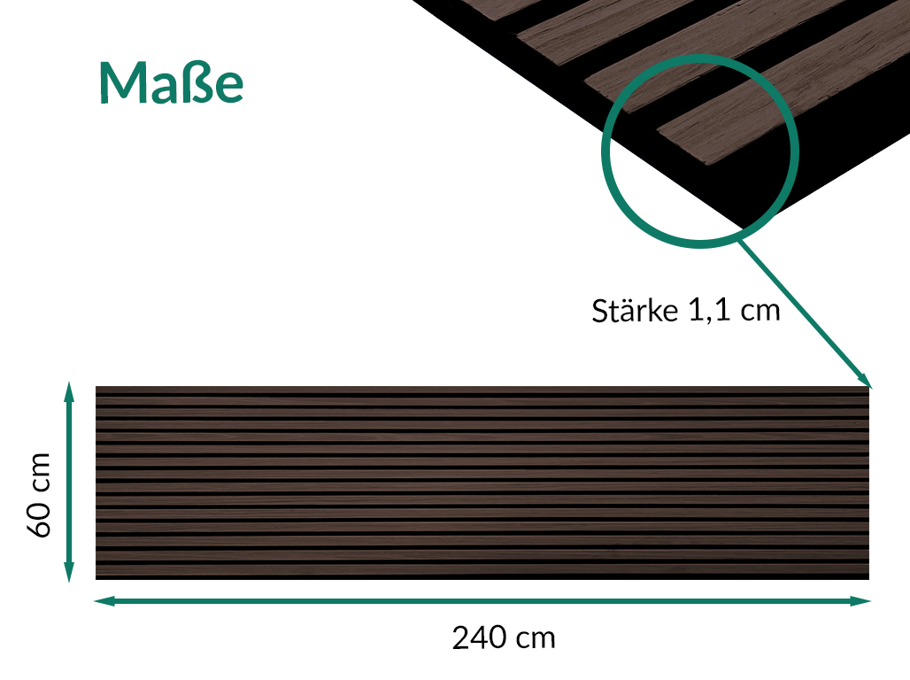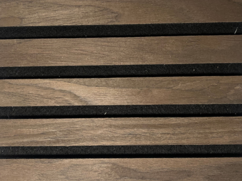 De panelen bestaan uit een 5 mm dikke dragerplaat van zwart vilt, waarop 6 mm dikke MDF-lamellen zijn aangebracht. Deze bijzondere structuur maakt een optimale akoestische regulatie en nagalmvermindering mogelijk.