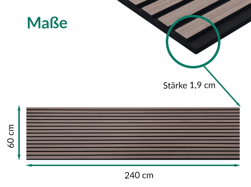 De panelen bestaan uit een aan drie zijden gefineerd dragermateriaal van zwart vilt, waarop 9 mm dikke MDF-lamellen zijn bevestigd. Deze bijzondere structuur maakt een optimale akoestische regulering en nagalmvermindering mogelijk.