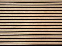 De panelen bestaan uit een driezijdig gefineerde draagplaat van zwart vilt, waarop 9 mm dikke MDF-lamellen zijn bevestigd. Deze bijzondere structuur zorgt voor een optimale akoestische regulering en nagalmvermindering.
