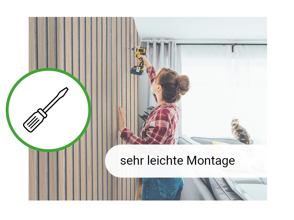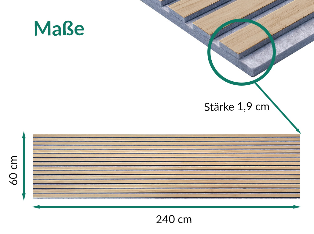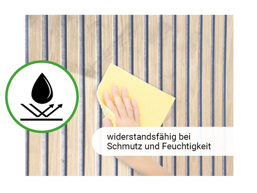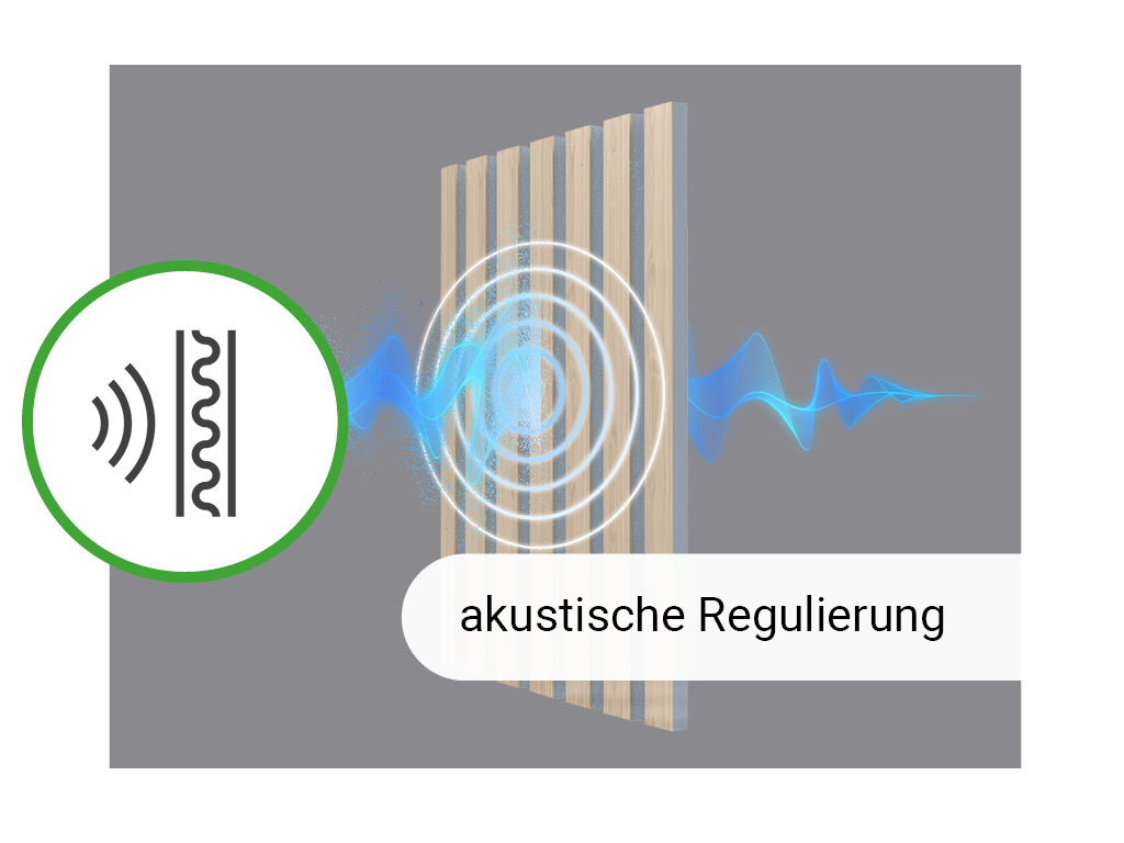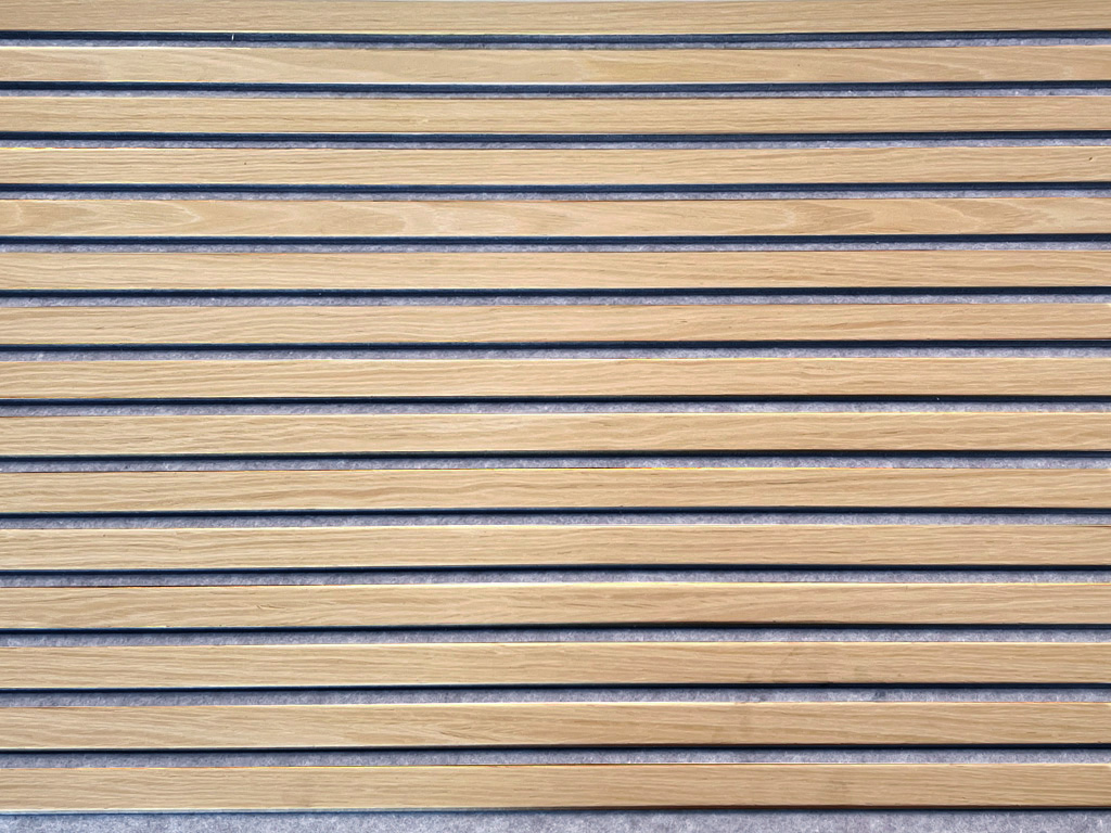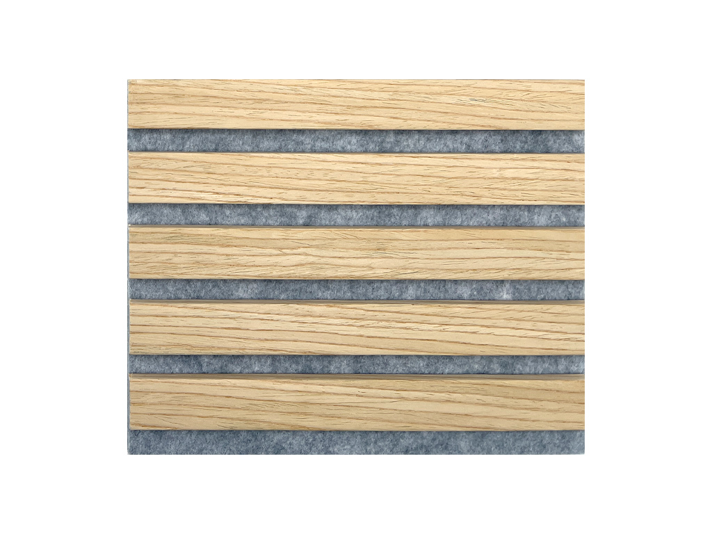 De panelen bestaan uit een driezijdig gefineerd draagpaneel van grijs vilt, waarop 9 mm dikke MDF-lamellen zijn aangebracht. Deze bijzondere structuur zorgt voor een optimale akoestische regulering en nabootsingdemping.
