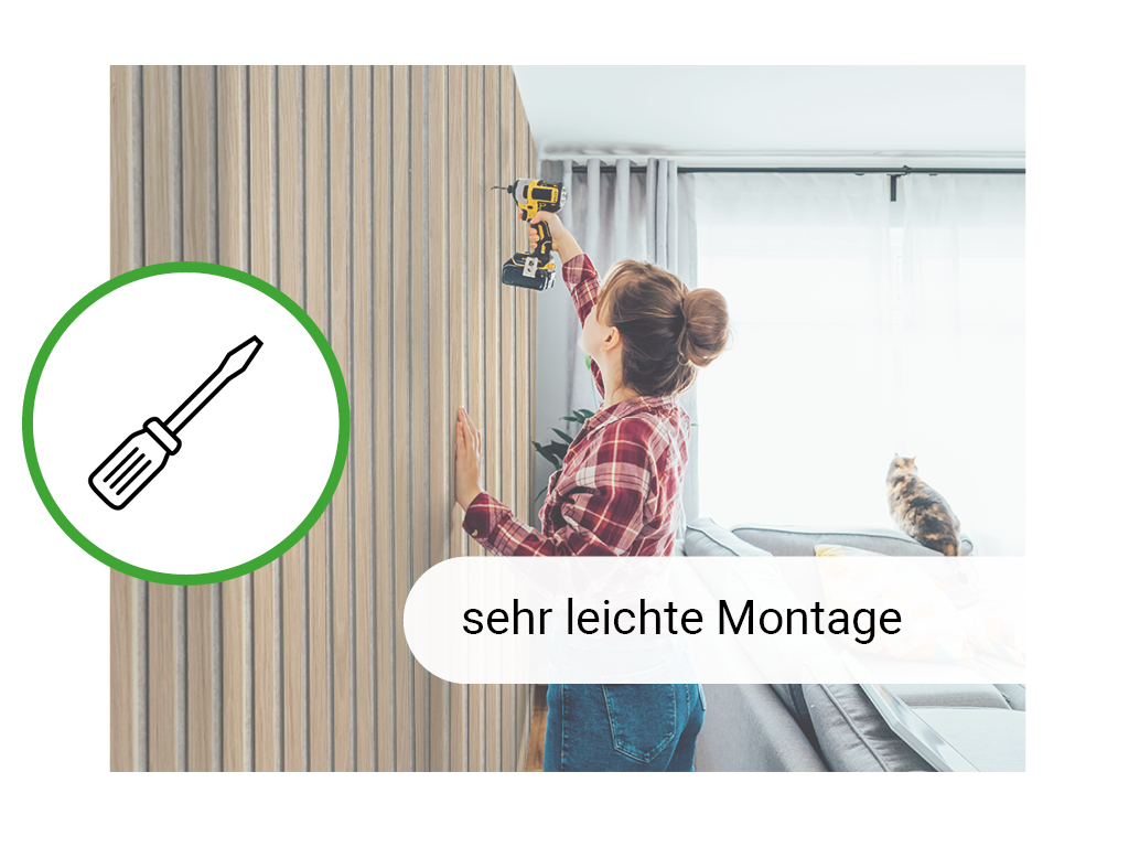 De akoestische panelen worden als hele platen geleverd, wat de installatie heel eenvoudig maakt – ze kunnen in een handomdraai aan wanden of plafonds worden gemonteerd. Bepaal eerst in welke richting je de panelen wilt aanbrengen en kort ze indien nodig op maat. Vervolgens aan de wand schroeven of lijmen – klaar!