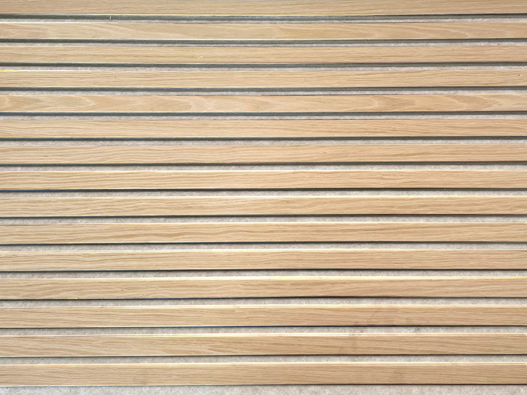 De panelen bestaan uit een driezijdig gefineerde dragerplaat van grijs vilt, waarop 9 mm dikke MDF-lamellen zijn aangebracht. Deze bijzondere structuur maakt een optimale akoestische regulering en nagalmdemping mogelijk.