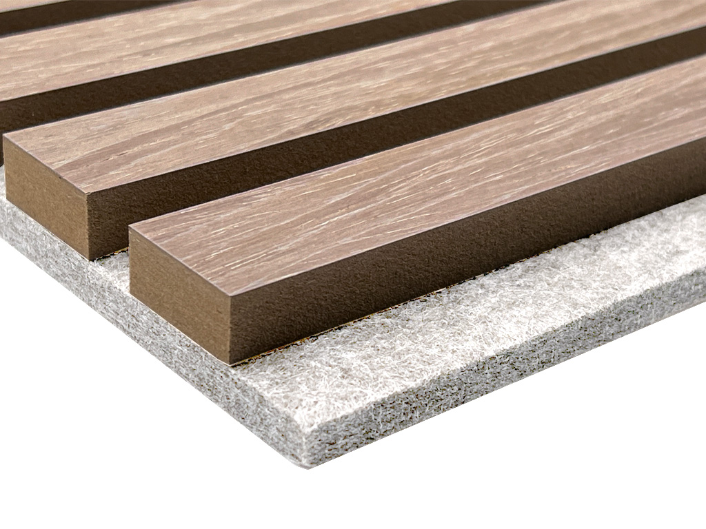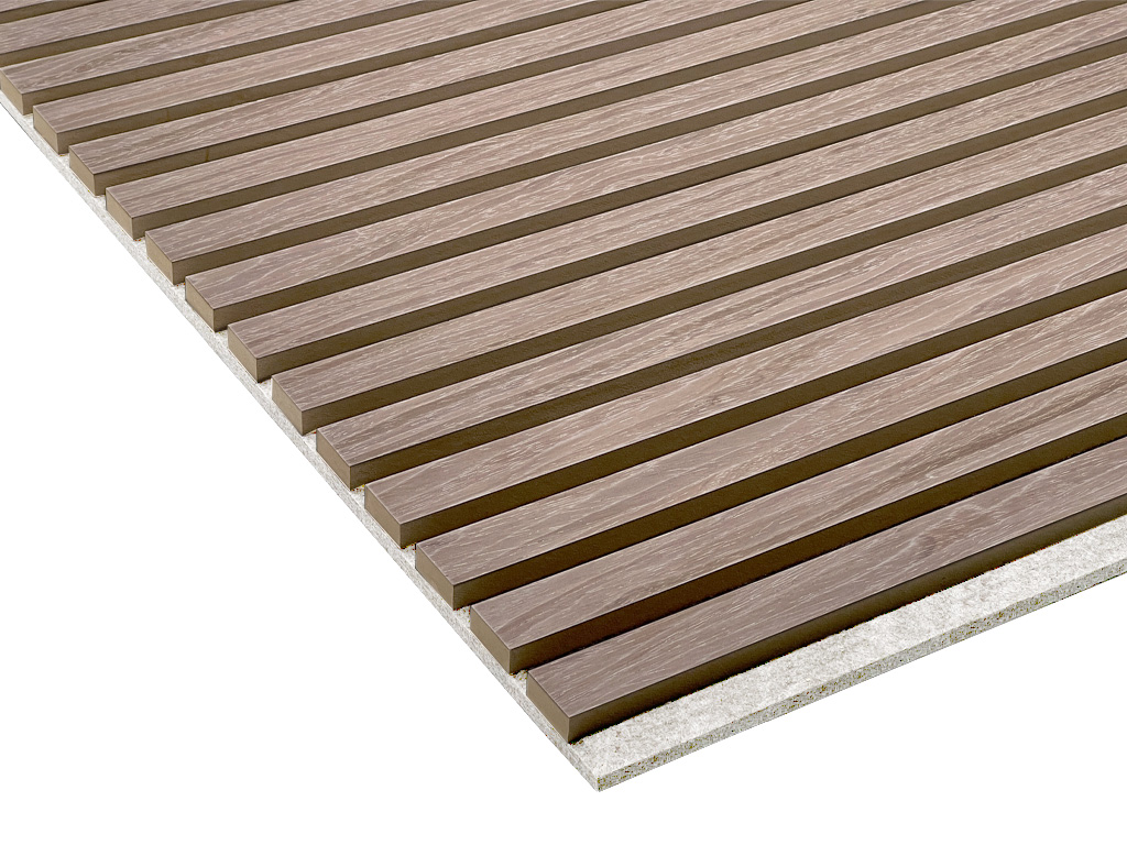 De akoestische panelen worden gebruikt voor de vormgeving van wanden en plafonds. Bovendien staan de akoestische eigenschappen van de producten op de voorgrond. De panelen hebben een lichtgrijs draagplaat gemaakt van gerecycled, geluidsabsorberend polyester, waarop lamellen (MDF) zijn aangebracht, die met knoestvrij eiken zijn gefineerd – het hout voor lamellen en fineer komt uitsluitend uit verantwoord beheerde bosbouw.
