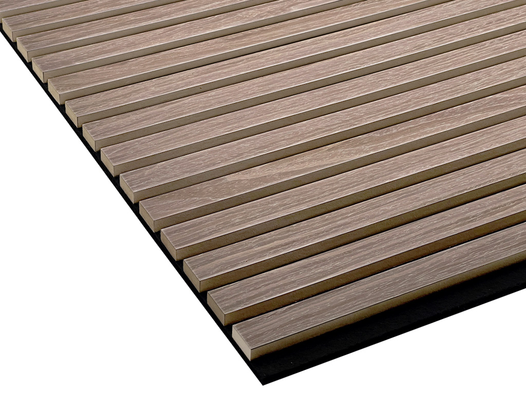 De akoestische panelen worden gebruikt voor de vormgeving van wanden en plafonds. Bovendien staan de akoestische eigenschappen van de producten op de voorgrond. De panelen hebben een zwarte draagplaat gemaakt van gerecycled, geluidsabsorberend polyester, waarop lamellen (MDF) zijn aangebracht, die met knoestvrij eiken zijn gefineerd – het hout voor lamellen en fineer komt uitsluitend uit verantwoord beheerde bosbouw.