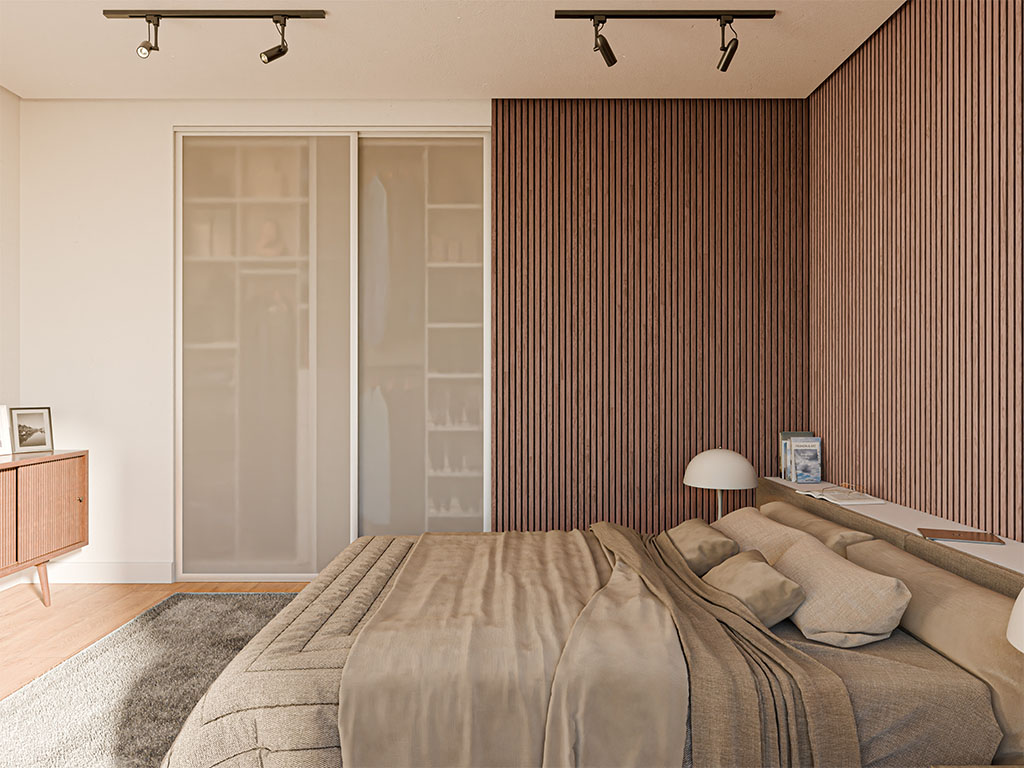 - De beplanking van een complete kamerwand met akoestische panelen (22 mm) resulteert in een geluidsreductie van ca. 25%, afhankelijk van andere factoren*