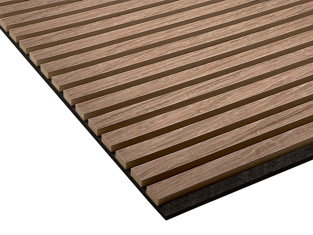 De akoestische panelen worden gebruikt voor de vormgeving van wanden en plafonds. Bovendien staan de akoestische eigenschappen van de producten op de voorgrond. De panelen hebben een zwarte draagplaat gemaakt van gerecycled, geluidsabsorberend polyester, waarop lamellen (MDF) zijn aangebracht, die met knoestvrij eiken zijn gefineerd – het hout voor lamellen en fineer komt uitsluitend uit verantwoord beheerde bosbouw.
