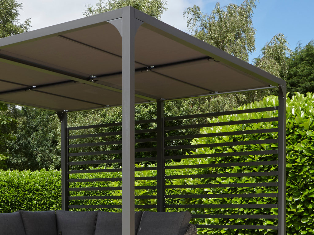 B x D x H: 292 x 292 x 220 cm, incl. 4-delig grijs zonnedak
