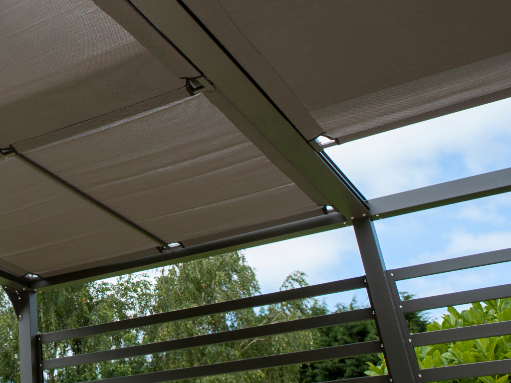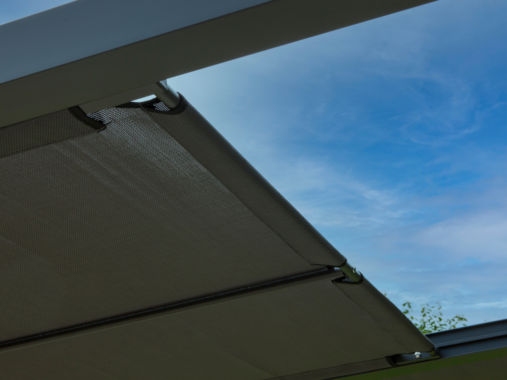 De open pergola is gemaakt van aluminium. Het oppervlak is gepoedercoat, wat zorgt voor een uitstekende weerstand en een lange levensduur. Tegelijkertijd beschermt de coating tegen stoten, krassen, UV-straling en weersinvloeden. Zo kun je je pergola in elk seizoen gebruiken – ongeacht het weer.