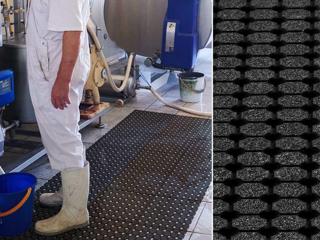 De toepassingsmogelijkheden van de mat zijn veelzijdig. Ze is optimaal geschikt als vloerbedekking voor natte zones in zwembaden, grootkeukens en fabriekshallen. Door de speciale vorm en structuur is de antislip rubberen loper geschikt voor elke ondergrond en vormt hij een stroef oppervlak dat ook blootsvoets aangenaam aanvoelt. Water kan probleemloos door de gaten wegstromen, zodat plasvorming wordt voorkomen. Bovendien is het materiaal robuust en onderhoudsvriendelijk.
