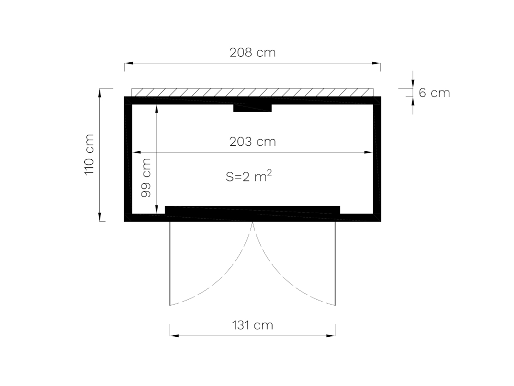 | Inwendige afmeting huis / grootste kamer (B x D cm): | 203 x 99 cm |