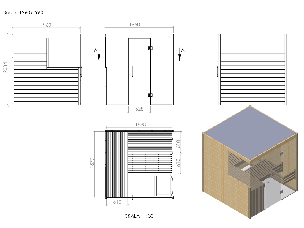 | Inwendige afmeting: | B 188,8 x D 187,7 x H 197,4 cm |
