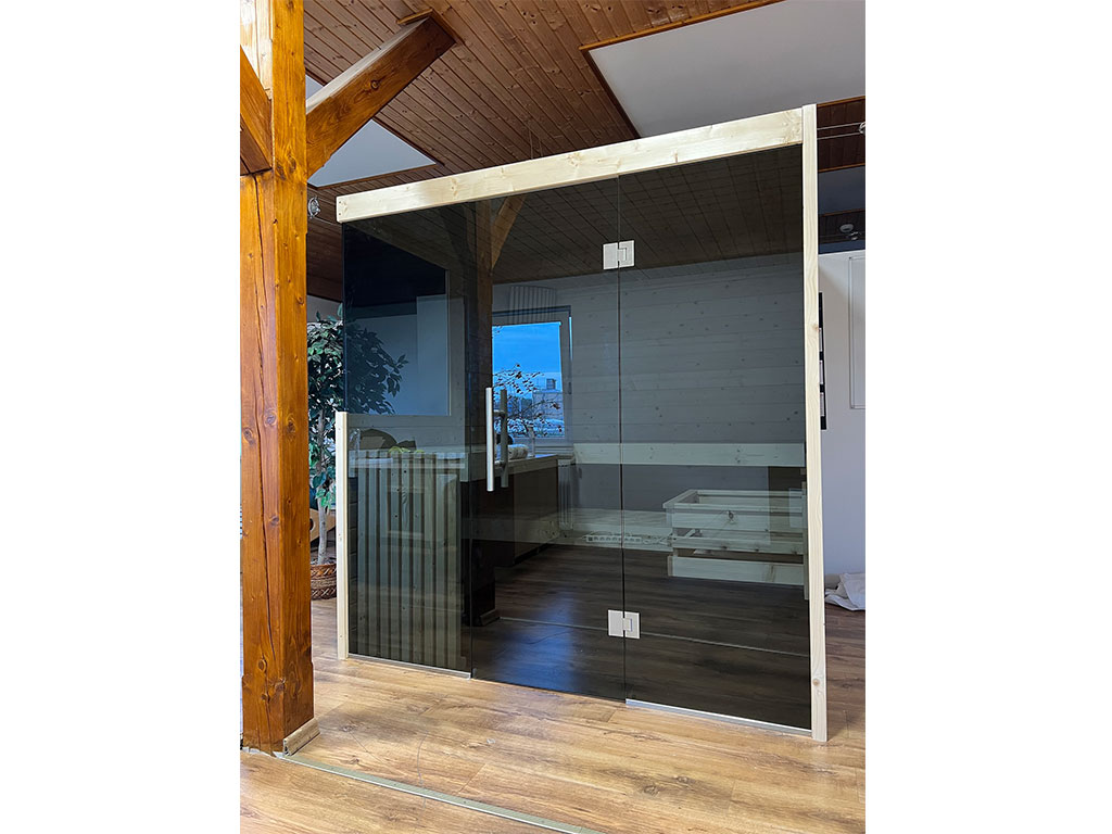 Binnensauna massieve sauna Nova grafiet volledig glazen deur