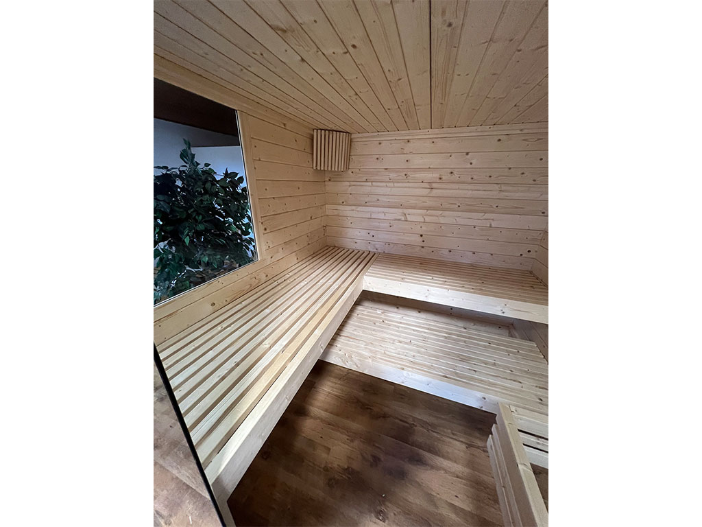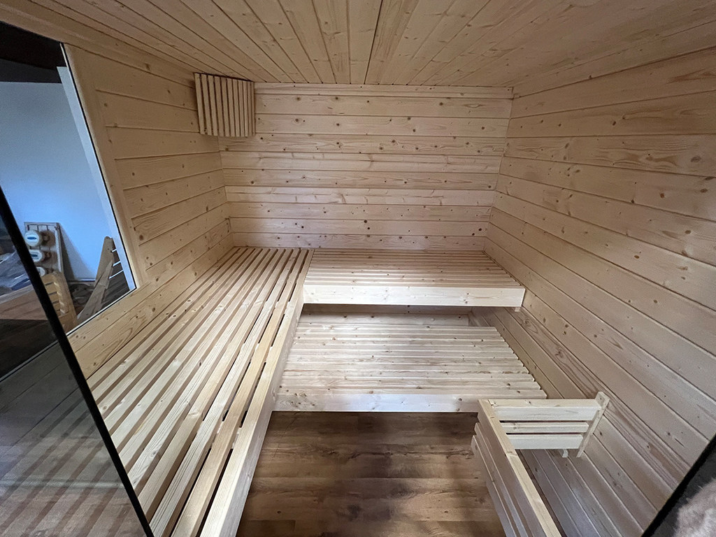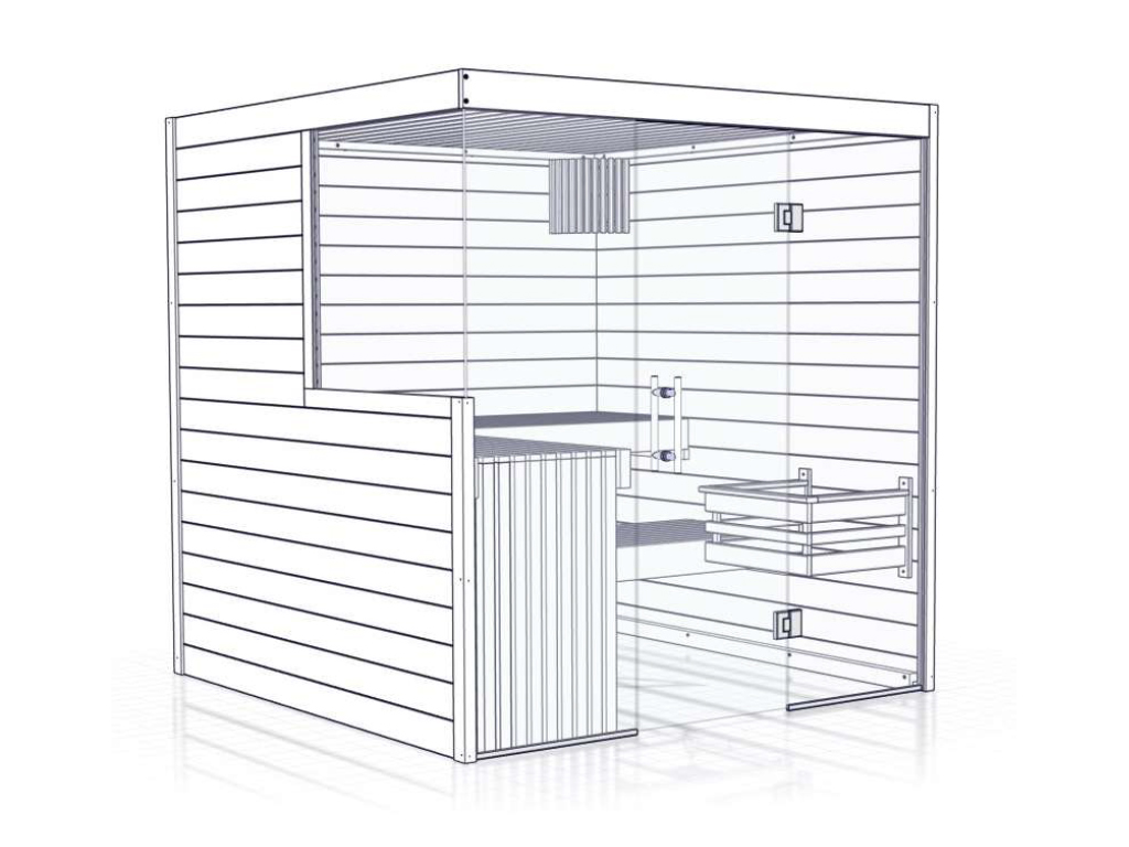 - Saunaligbanken: Met 3 ligbanken wordt de ervaring voor elke saunagast bijzonder aangenaam. De basisuitrusting omvat de volgende ligbanken: 3 ligbanken