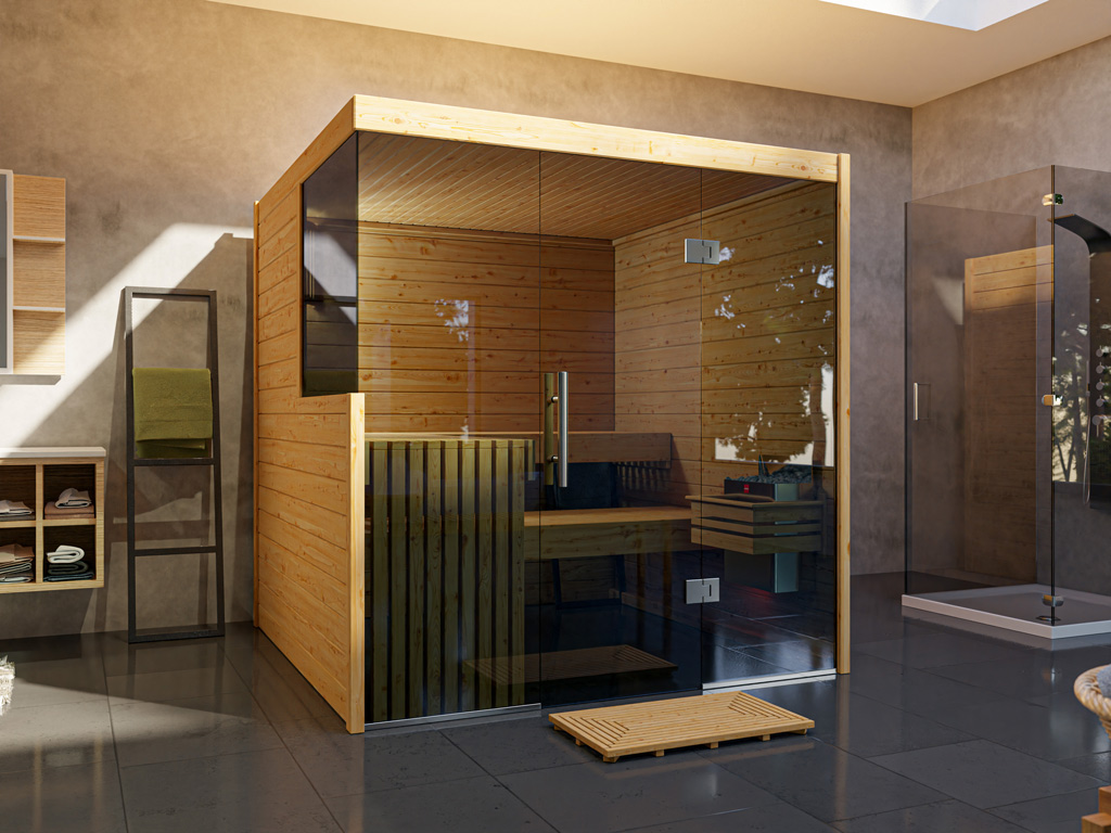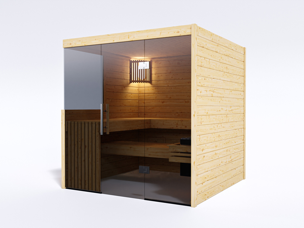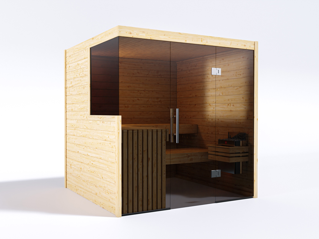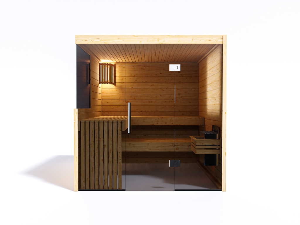 Het voordeel van een massief houten sauna ligt in zijn natuurlijkheid met 100% Scandinavisch vurenhout. Door het lage risico op splinters en het lage aandeel hars en knoesten is vurenhout ideaal voor de saunabouw. Natuurlijk massief hout heeft ook zeer goede warmteopslageigenschappen, zodat temperaturen langzaam kunnen worden op- en afgebouwd en langdurig kunnen worden gehandhaafd. Daarnaast worden harsen op houtbasis en etherische oliën tijdens de sauna gemengd in het gezonde klimaat.
