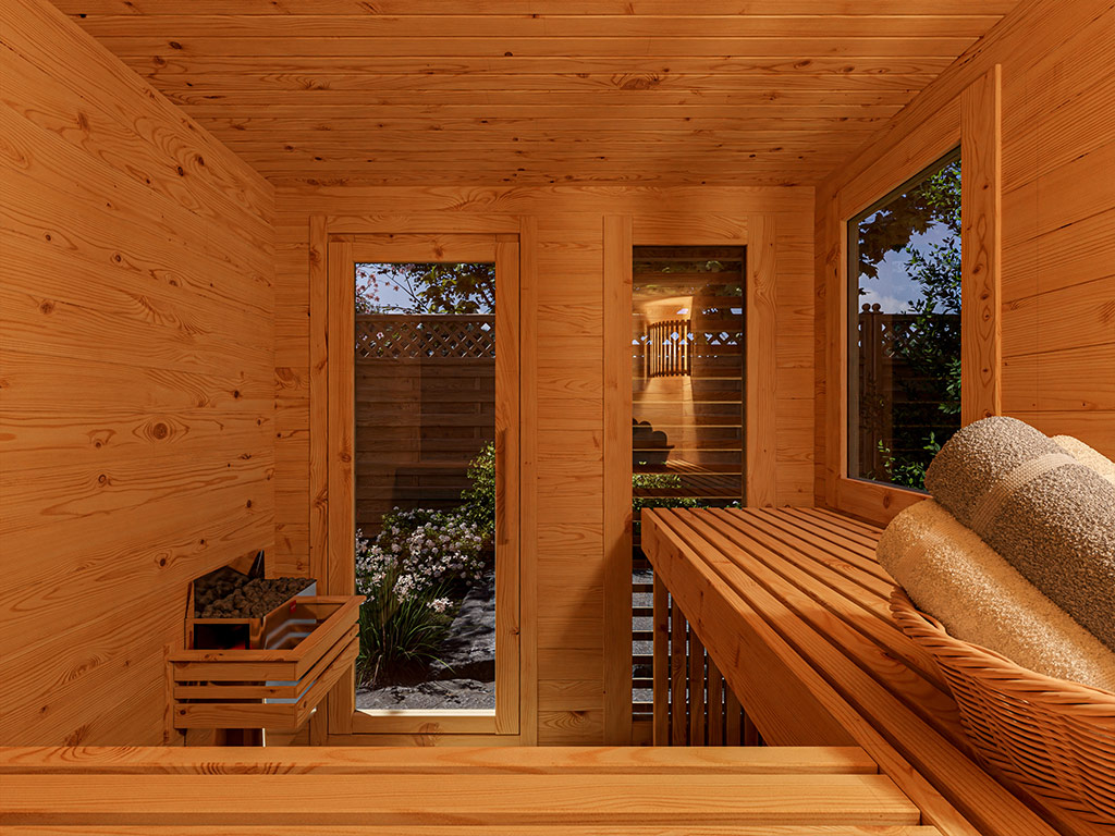 Saunahuis blokhut Layla 40 mm met grafiet glazen deur onbehandeld