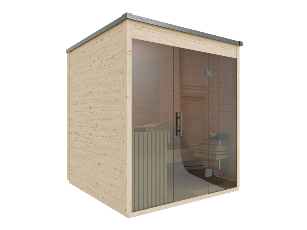 Als klassieker onder de buitensauna’s biedt een blokhutconstructie een zeer robuuste bouwwijze, gecombineerd met een bijzondere, natuurlijke uitstraling. De constructie is geïnspireerd op de traditionele blokhut. De wanden bestaan uit geprefabriceerde houtdelen die dankzij een tand-en-groefverbinding zonder veel moeite op elkaar kunnen worden gestapeld. Zo is een eenvoudige en snelle montage en demontage gegarandeerd. Deze tuinsauna is opgebouwd uit 28 mm dikke wandplanken van vurenhout. Met een totale afmeting van 200 x 196 cm biedt zij ruim genoeg plaats voor ongestoorde wellnessmomenten in je eigen tuin.