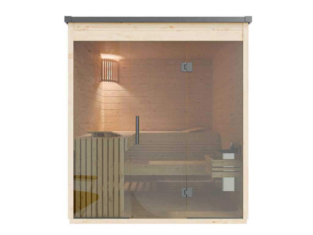 De frontinstap van deze sauna onderstreept het traditionele karakter en is een geliefde klassieker. De toegang van voren zorgt voor overzicht en duidelijkheid.