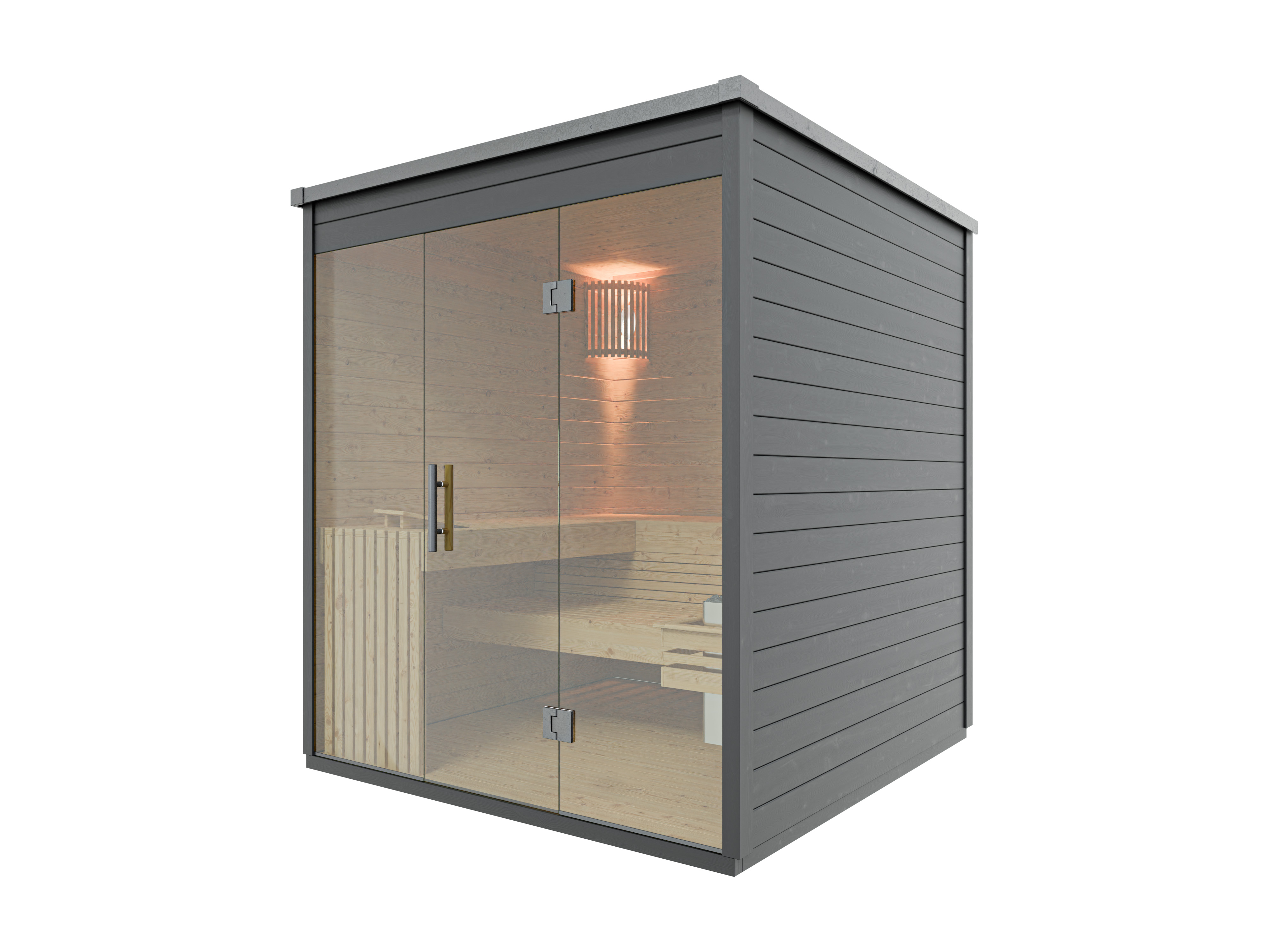 B x D x H: 196 x 196 x 221 cm, kleurig voorbehandeld, incl. saunalamp & hoofdsteunen