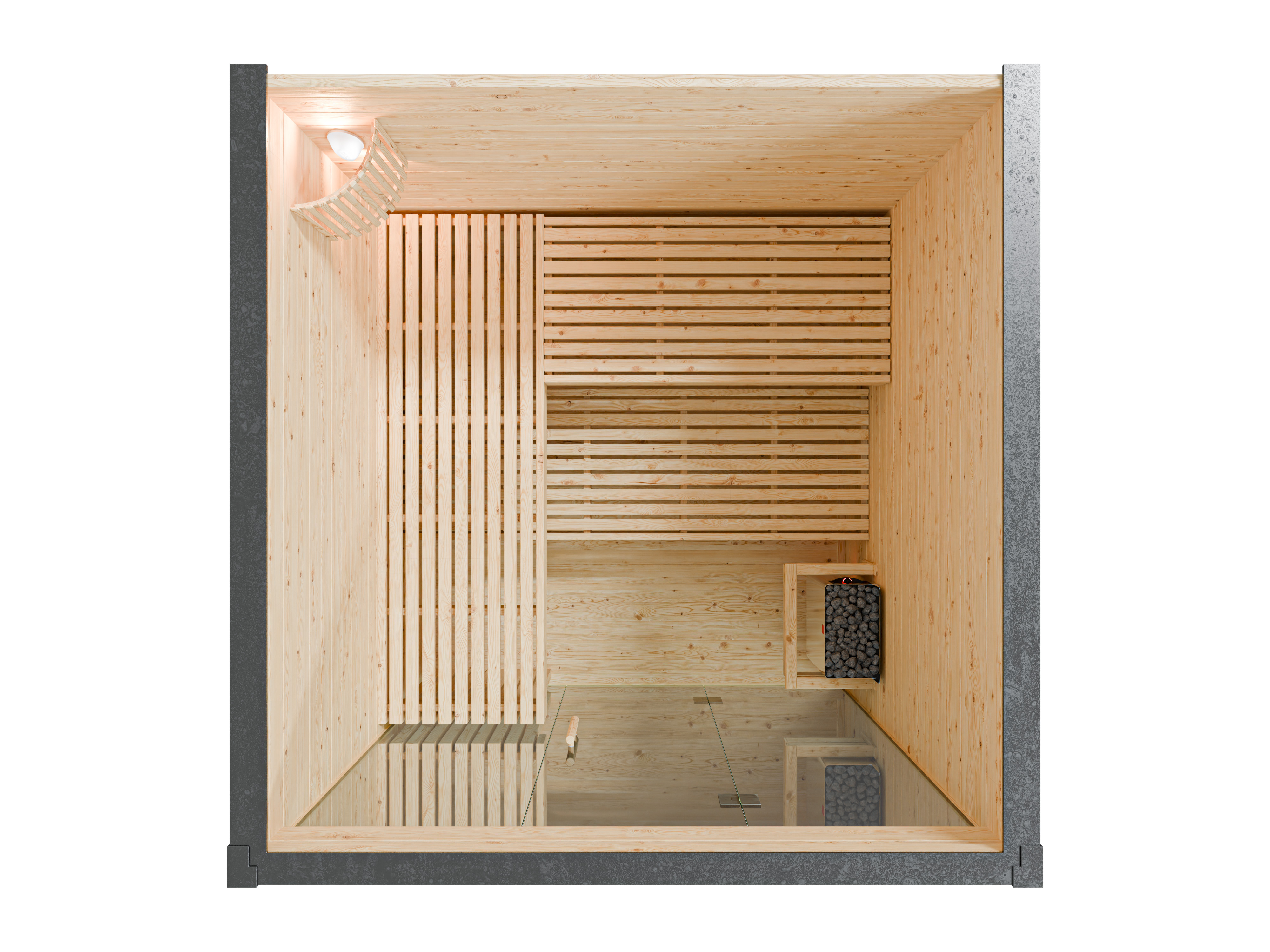 In het algemeen raden we de volgende basisuitrusting aan voor maximaal saunagenot: saunalamp, sterrenhemel, saunageschikte luidsprekers, geuroliën, rustbank en hoofdsteun. Deze en vele andere artikelen vind je in ons accessoire-assortiment.