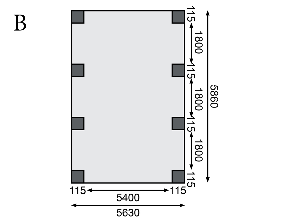 Benodigde paalankers: 8 stuks (afzonderlijk verkrijgbaar)