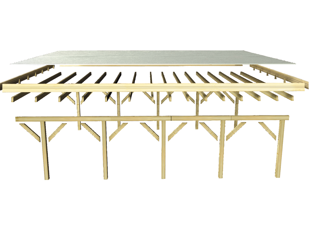 Carport Double 2 Classic met stalen dak, drukgeïmpregneerd