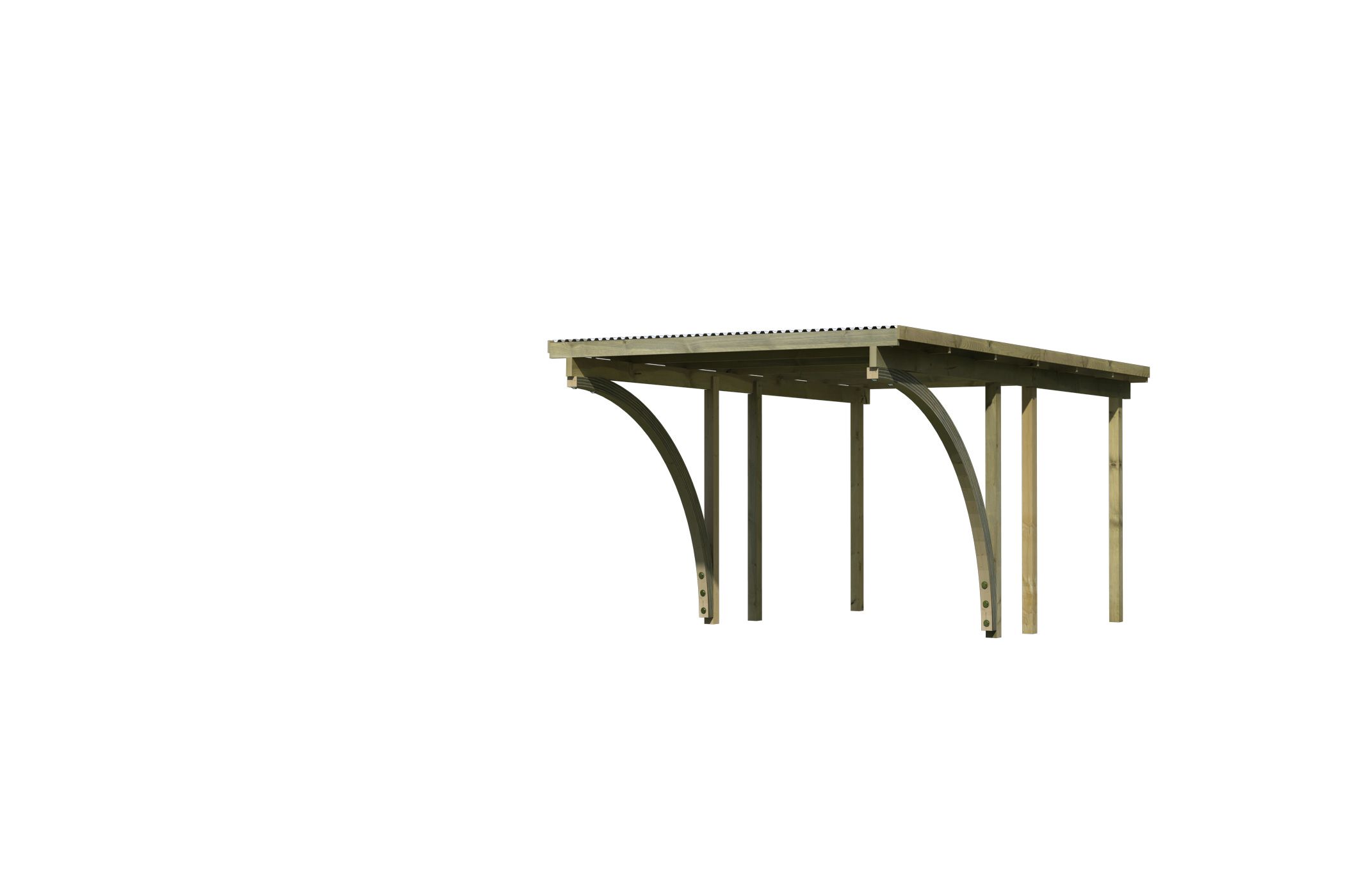 De 9 x 9 cm dikke palen van de carport zijn gemaakt van chroomvrij, geïmpregneerd massief hout en zijn daarom bijzonder weerbestendig. Dankzij het praktische systeemontwerp is een eenvoudige en snelle montage ook mogelijk. - Praktische ingangsbogen