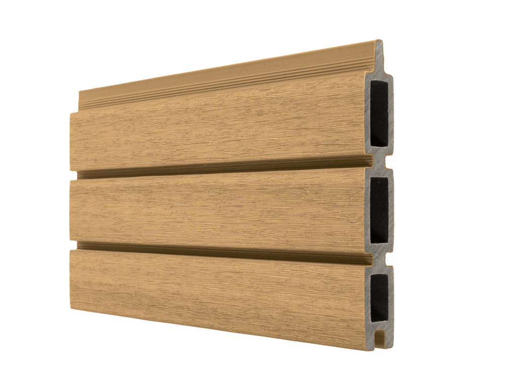 Het MODERN WPC‑tuinscherm profiel straalt elegantie en verfijning uit door de zorgvuldige plaatsing van de groeven. Qua uitstraling doet het denken aan een gevel van losse rhombusprofielen. De Modern-profielen worden in elkaar geschoven. De afmeting van de messing aan elke plank is zo berekend dat bij het stapelen de verbinding tussen de afzonderlijke planken onzichtbaar wordt. De techniek verdwijnt als het ware achter het fraaie effect dat ze creëert.