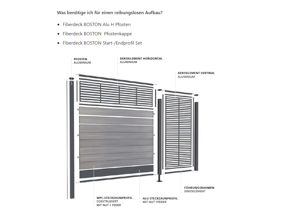 De WPC schutting Boston – collectie Modern is een hoogwaardig en duurzaam schuttingsysteem voor optimale privacy. Door de modulaire opbouw kan de schutting perfect worden afgestemd op verschillende situaties en volledig naar jouw wensen worden vormgegeven. De WPC‑modules met een breedte van 15 cm uit de serie BOSTON zijn ideaal voor het bouwen van privacy-schuttingen. De afzonderlijke moduleplanken worden in de speciale aluminium palen van de BOSTON‑serie geschoven, waardoor een visueel aantrekkelijk en strak tuinscherm ontstaat.