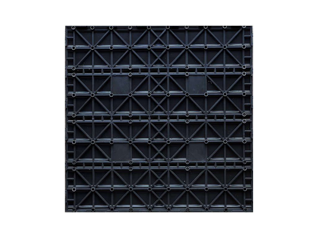 Dankzij het kliksysteem is de vloer zeer eenvoudig te leggen en net zo gemakkelijk weer te demonteren. De tegels zijn geïntegreerd in een kunststof draagrooster en worden simpelweg in elkaar geklikt.