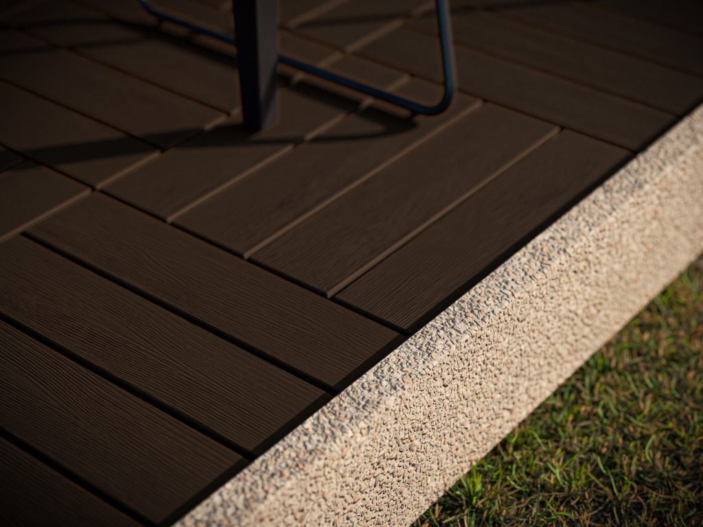 Bij geco-extrudeerde vlondertegels wordt de WPC-kern volledig omhuld door kunststof. Dit verhoogt de weerstand tegen vocht, schimmel en insecten nog verder. Tegelijkertijd zorgt dit productieproces ervoor dat de buitenlaag langer mooi blijft.