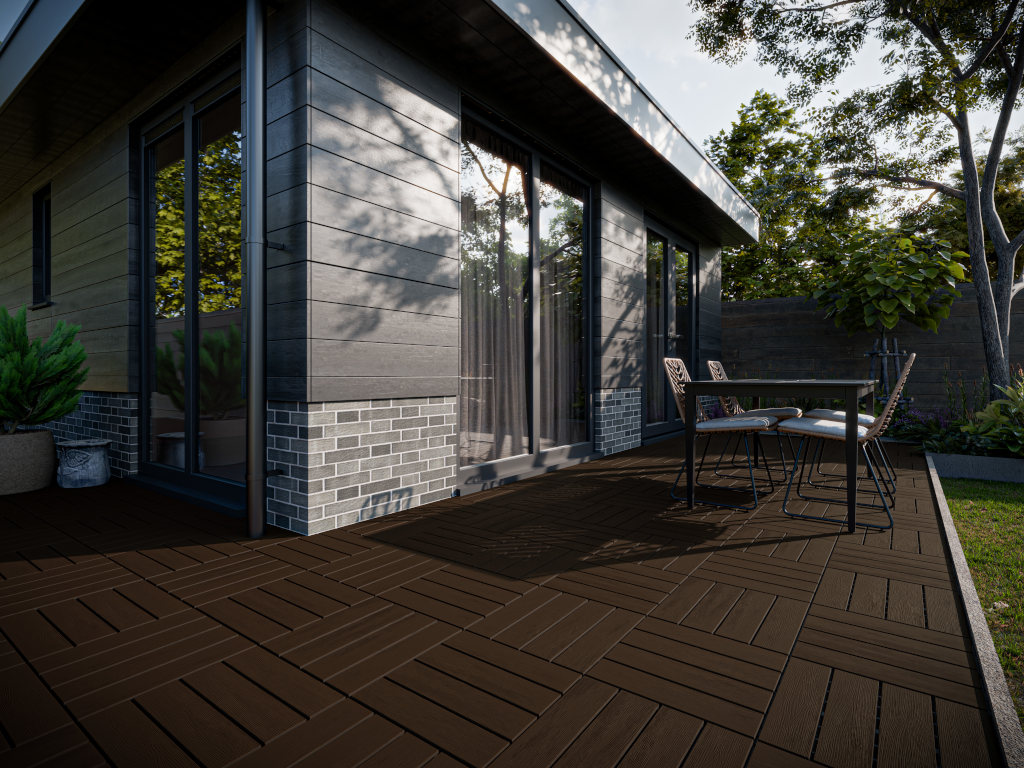 Composiet vlondertegel in houtlook bruin