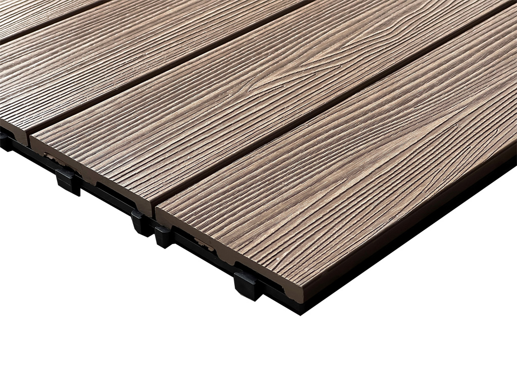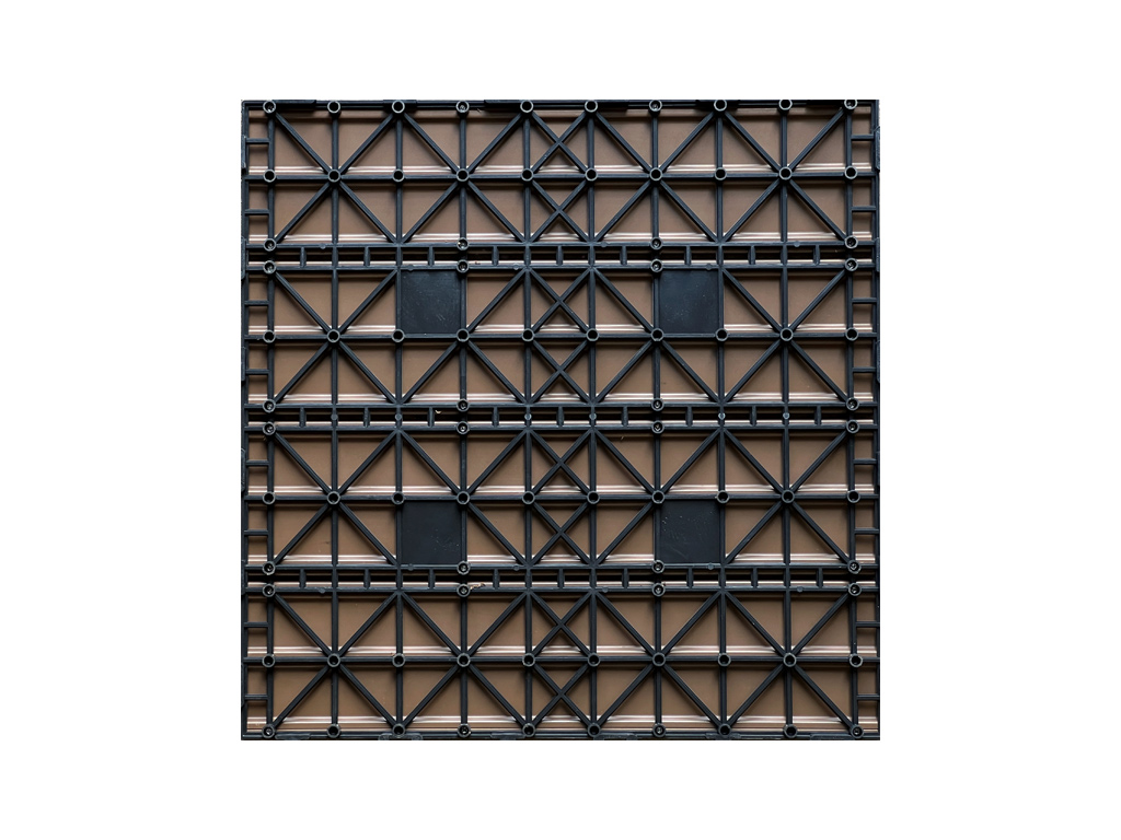 Deze 21 mm dikke vlondertegels worden vervaardigd uit WPC. WPC (Wood Plastic Composite) is een combinatie van ca. 70 % hout en 30 % kunststof met tal van voordelen. Dit composietmateriaal is niet alleen eenvoudig te reinigen en te onderhouden, maar ook weerbestendig, vorm- en kleurvast, splintervrij en antislip – een ideale terrasafwerking. Daarnaast kenmerkt het zich door een hoge dichtheid, waardoor het goed beschermd is tegen aantasting door insecten.