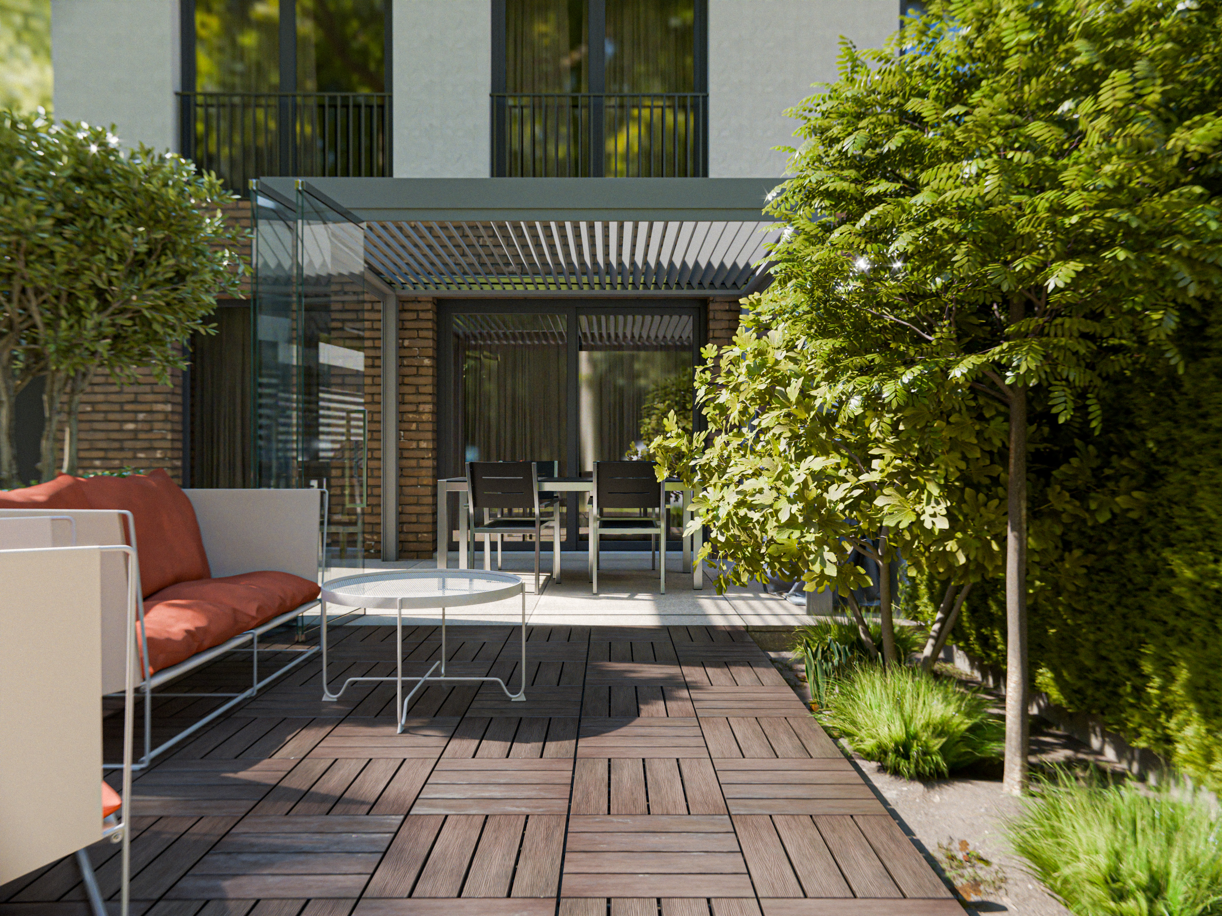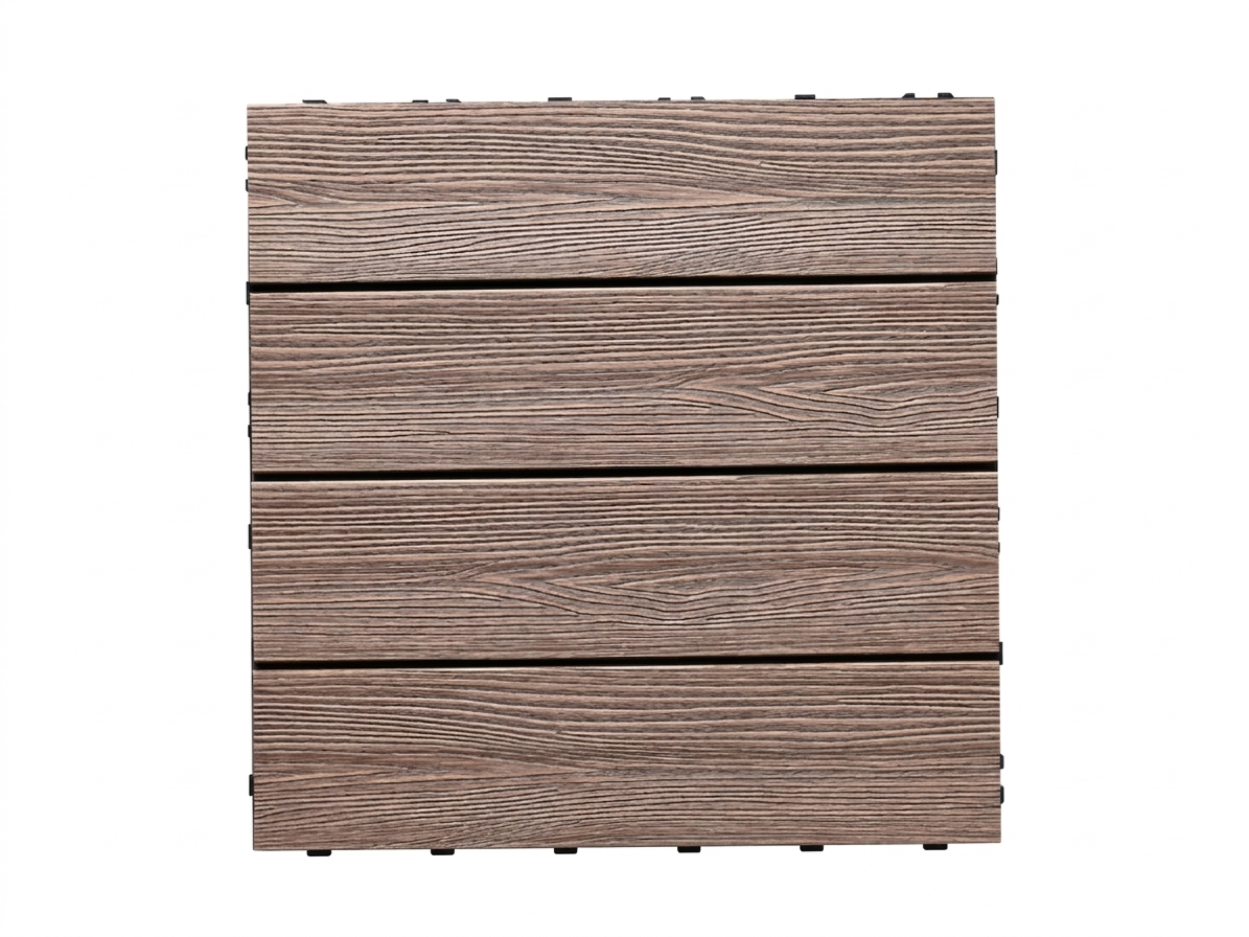 Deze 21 mm dikke vlondertegels worden vervaardigd uit WPC. WPC (Wood Plastic Composite) is een combinatie van ca. 70 % hout en 30 % kunststof met tal van voordelen. Dit composietmateriaal is niet alleen eenvoudig te reinigen en te onderhouden, maar ook weerbestendig, vorm- en kleurvast, splintervrij en antislip – een ideale terrasafwerking. Daarnaast kenmerkt het zich door een hoge dichtheid, waardoor het goed beschermd is tegen aantasting door insecten.