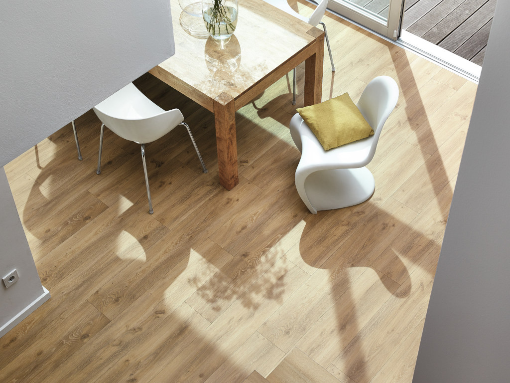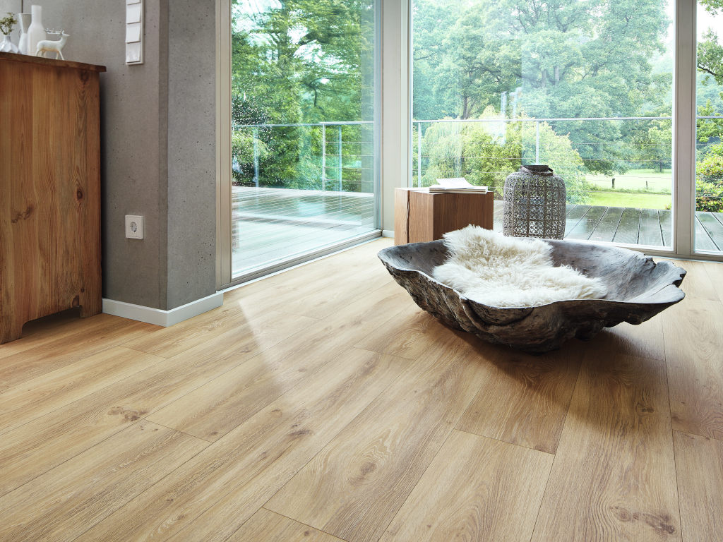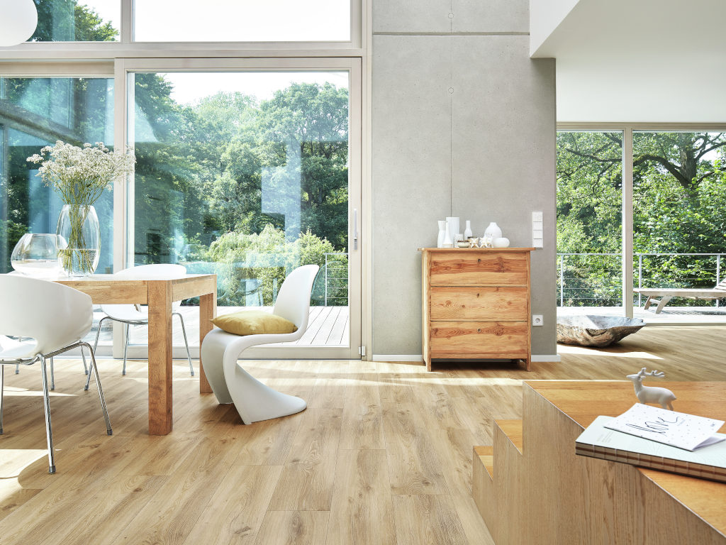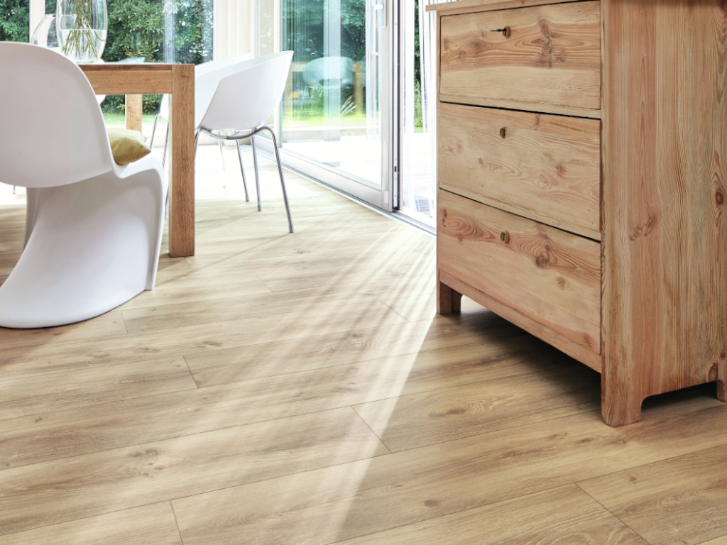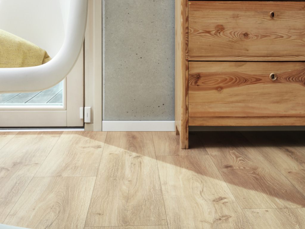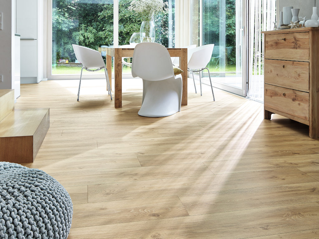 8 mm dik, 5G Dry kliksysteem, geïntegreerde ondervloer, geschikt voor vochtige ruimtes, poriënstructuur, 4-zijdige microvelling