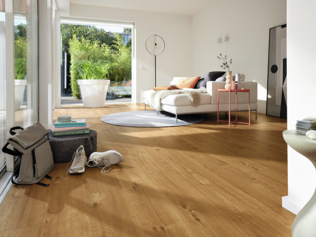 8 mm dik, 5G Dry kliksysteem, geïntegreerde ondervloer, geschikt voor vochtige ruimtes, poriënstructuur, 4-zijdige microvelling
