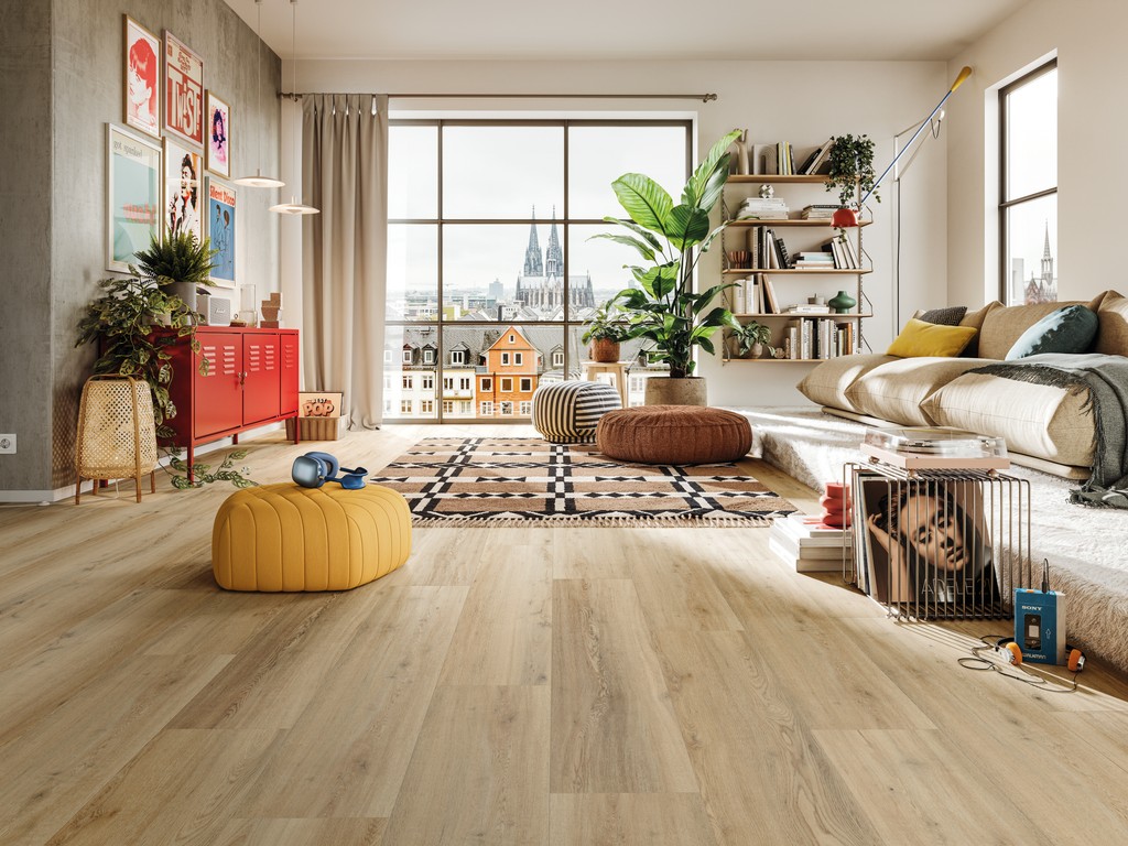 5 mm dik, klikverbinding, geïntegreerde isolatie, gestructureerd, geschikt voor vochtige ruimtes, 4-zijdige afschuining