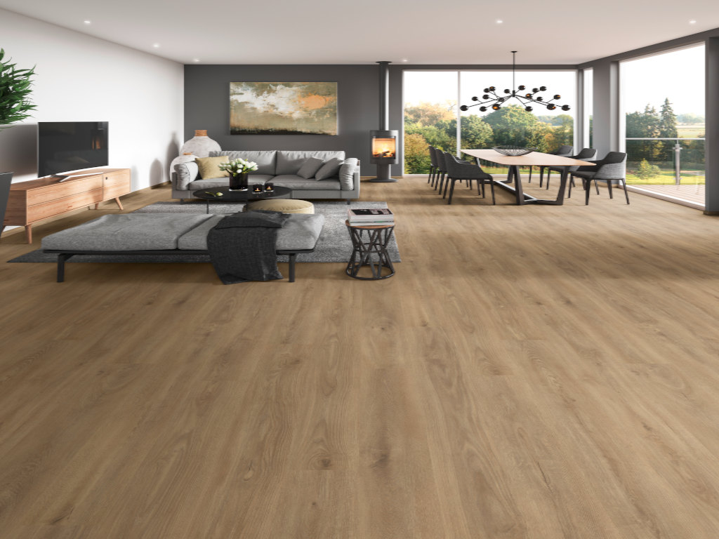 1288 × 195 x 8 mm, klikverbinding, geschikt voor vochtige ruimtes, houtnerfstructuur over het gehele oppervlak