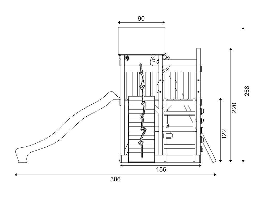 Deze speeltoren is gemaakt van hout. Dit natuurlijke materiaal is ideaal voor buitenspeelgoed – sterk en duurzaam. De palen van de speeltoren zijn 7 x 7 cm dik en zorgen zo voor een zeer stabiele basisconstructie van dit houten klimtoestel.