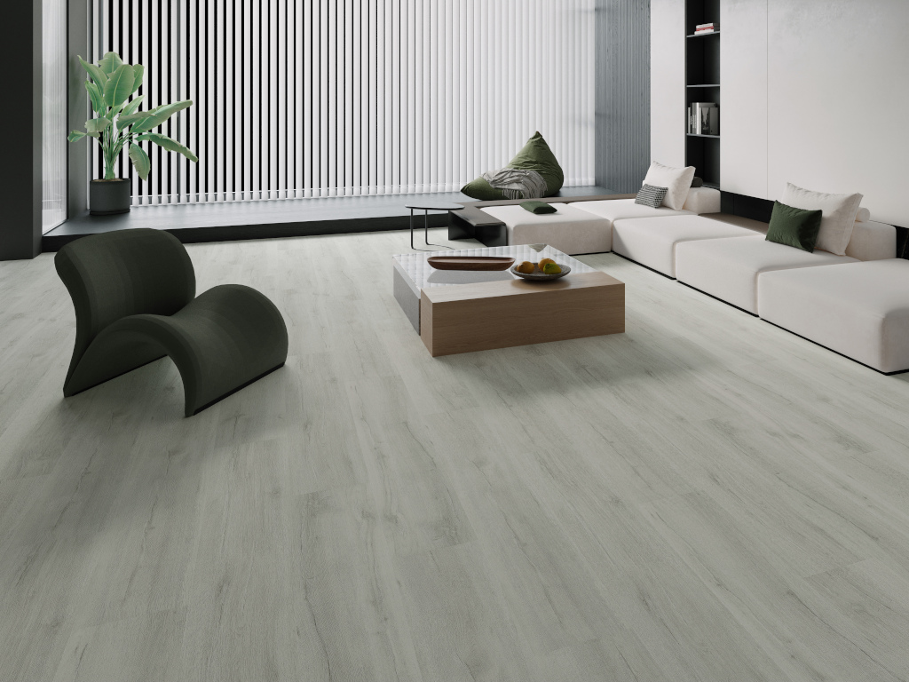 Dikte 5 mm, kliksysteem, geschikt voor vochtige ruimtes, geïntegreerde ondervloer