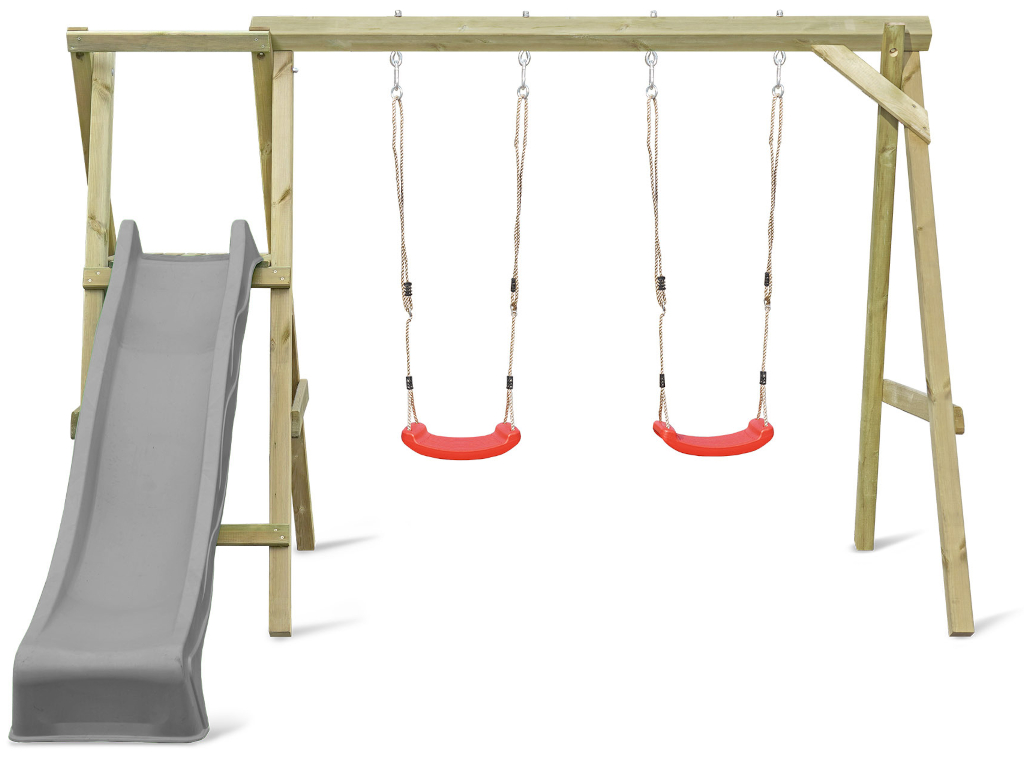Dubbele schommel met platform Cosy Double KDI incl. glijbaan grijs + 2 schommelzitjes rood