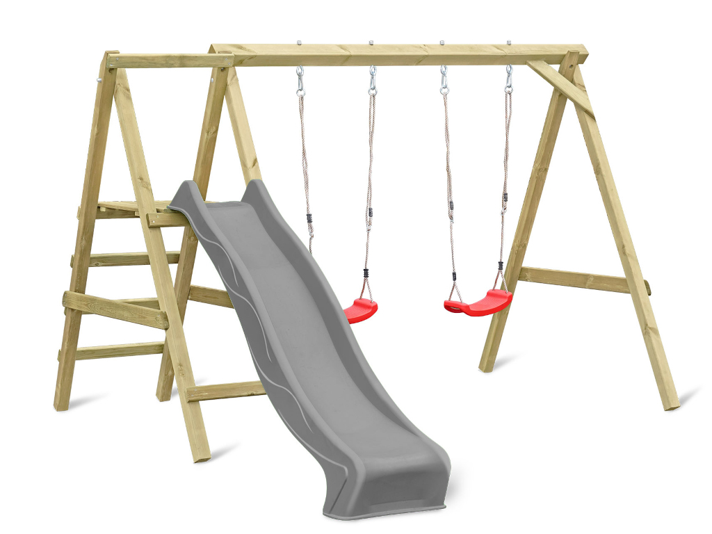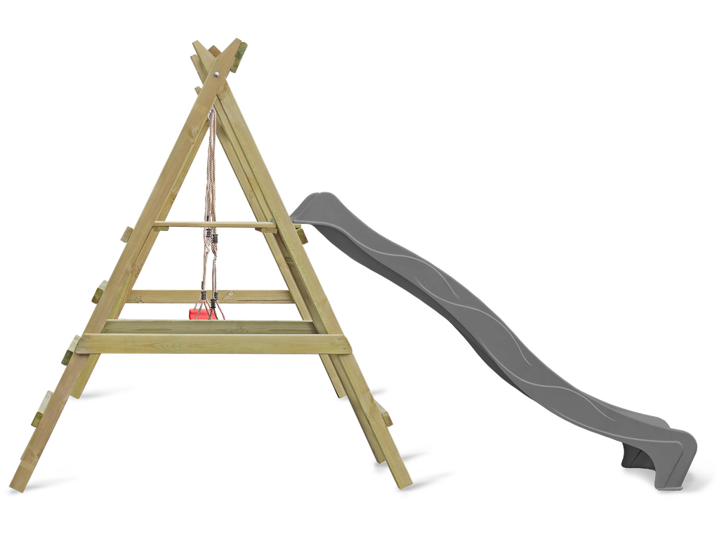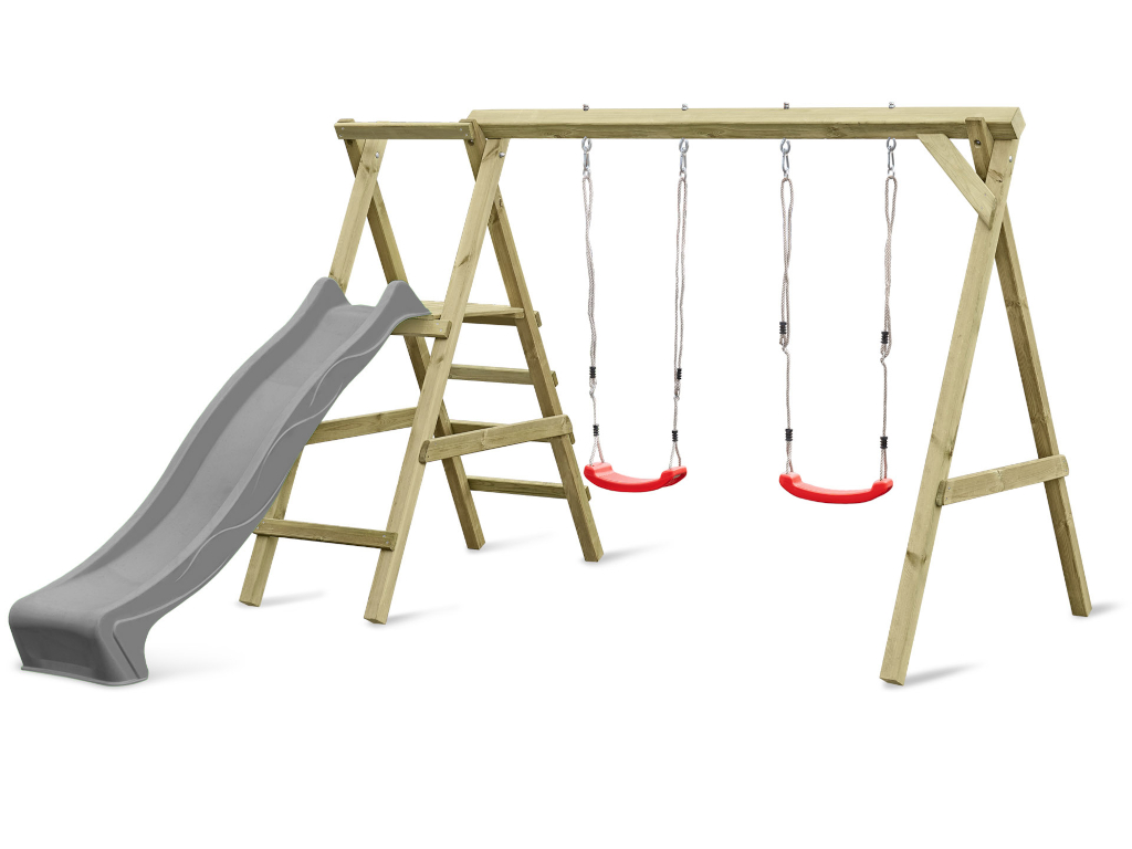 Dubbele schommel met platform Cosy Double KDI incl. glijbaan grijs + 2 schommelzitjes rood