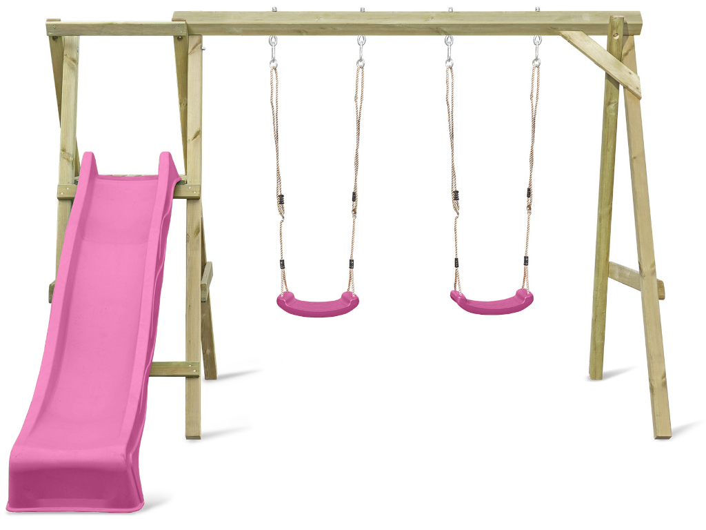 Dubbele schommel met platform Cosy Double KDI incl. glijbaan roze + 2 schommelzitjes roze