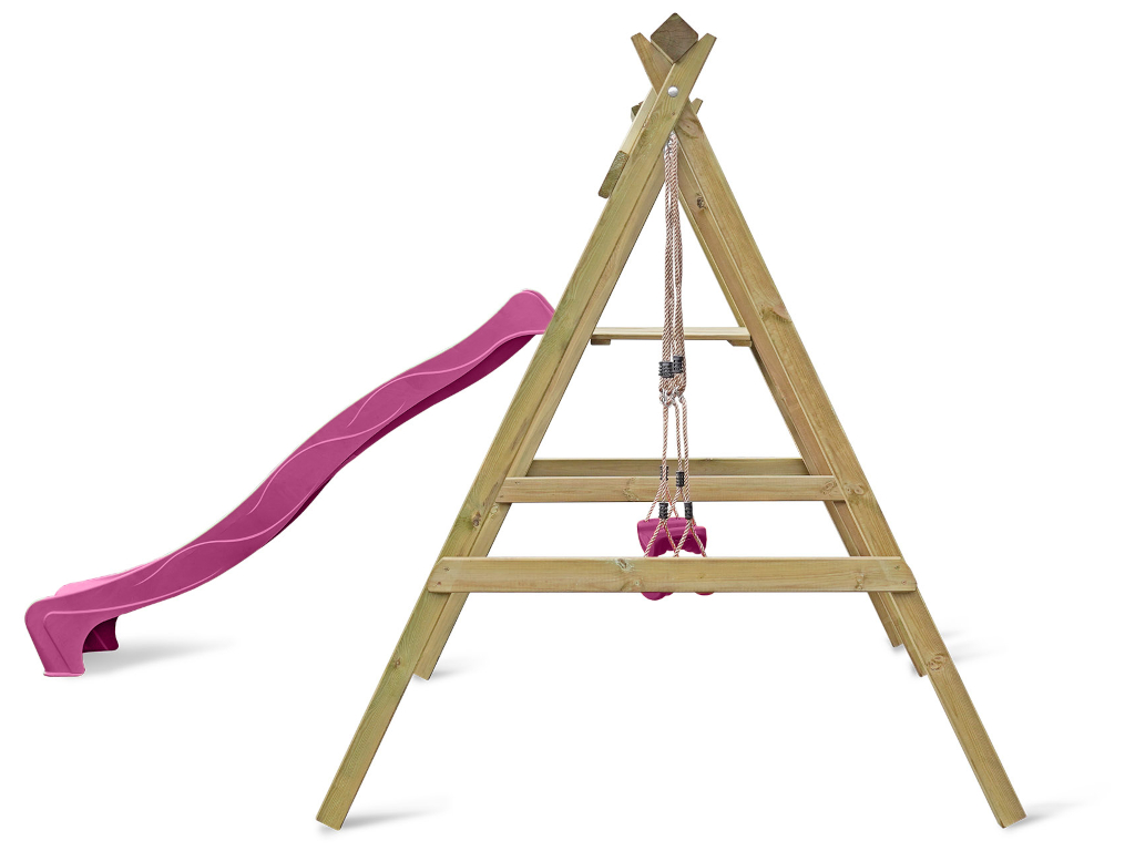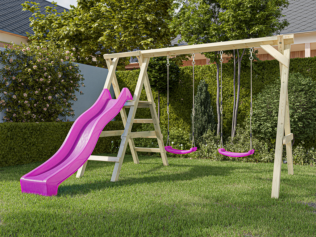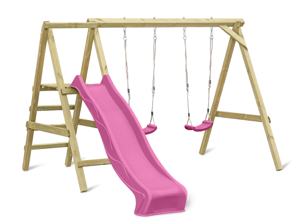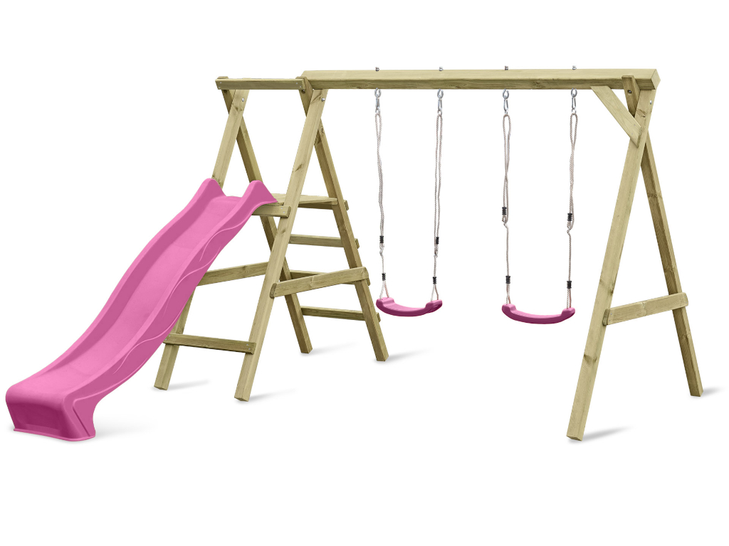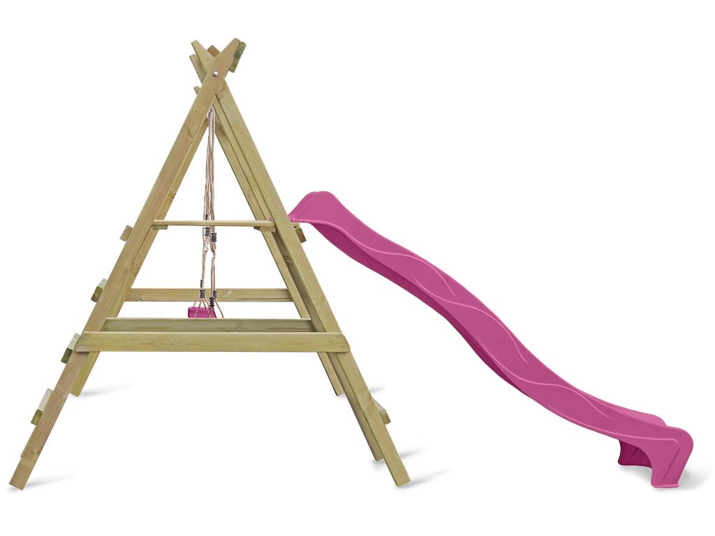 Dubbele schommel met platform Cosy Double KDI incl. glijbaan roze + 2 schommelzitjes roze