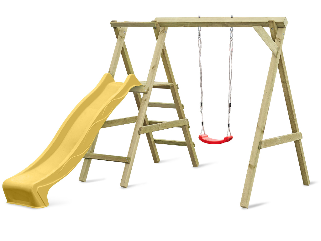 Enkele schommel met platform Cosy Single KDI incl. glijbaan geel, schommelzitje rood