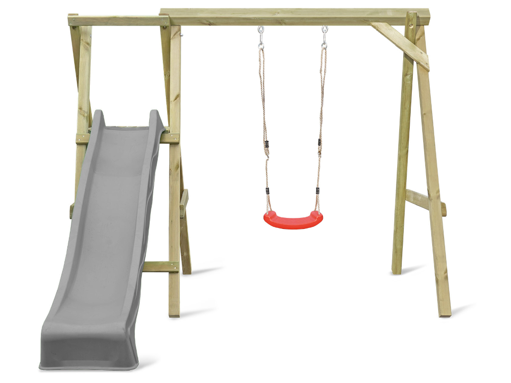 | Leveringsomvang: | Enkele schommel met platform, 2 schommelhaken, 1 glijbaan, 1 schommelzitje |